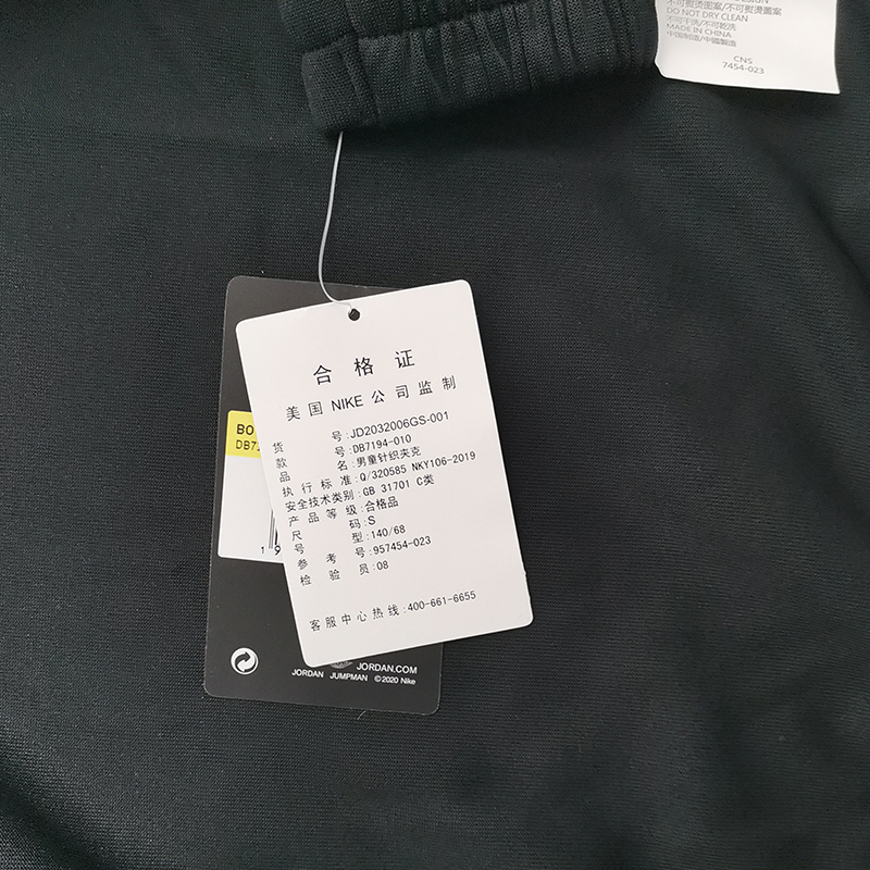 AIR JORDAN乔丹AJ童装秋新男童双logo针织夹克外套JD2032006