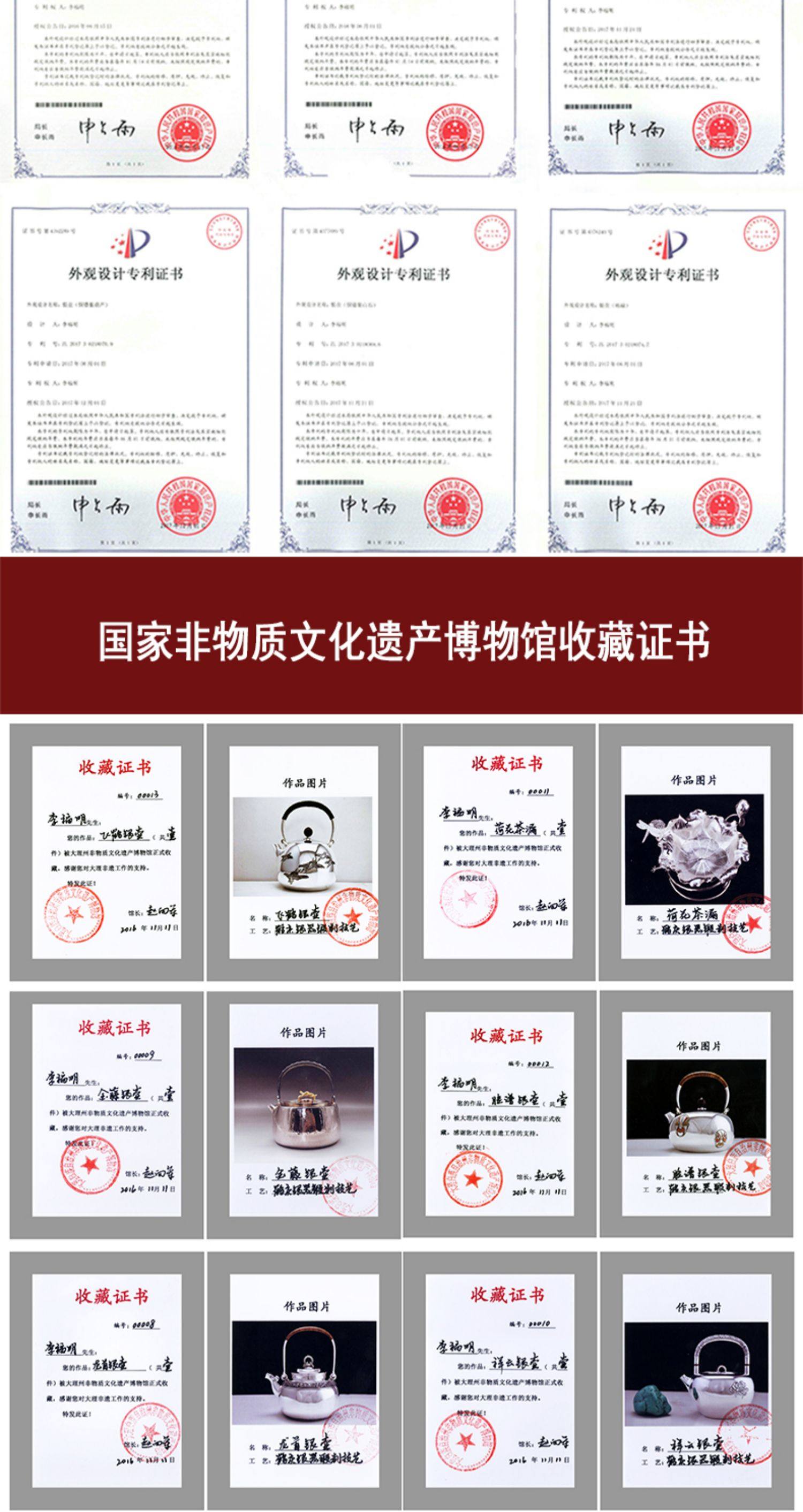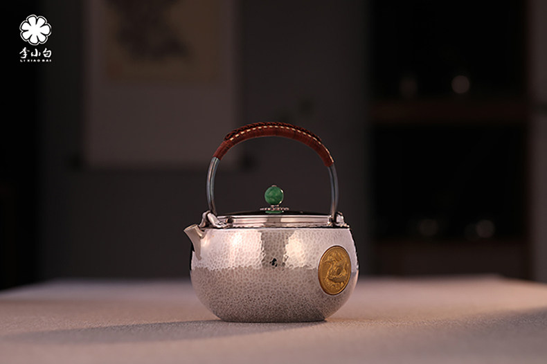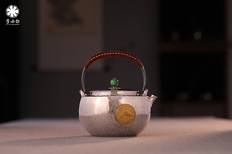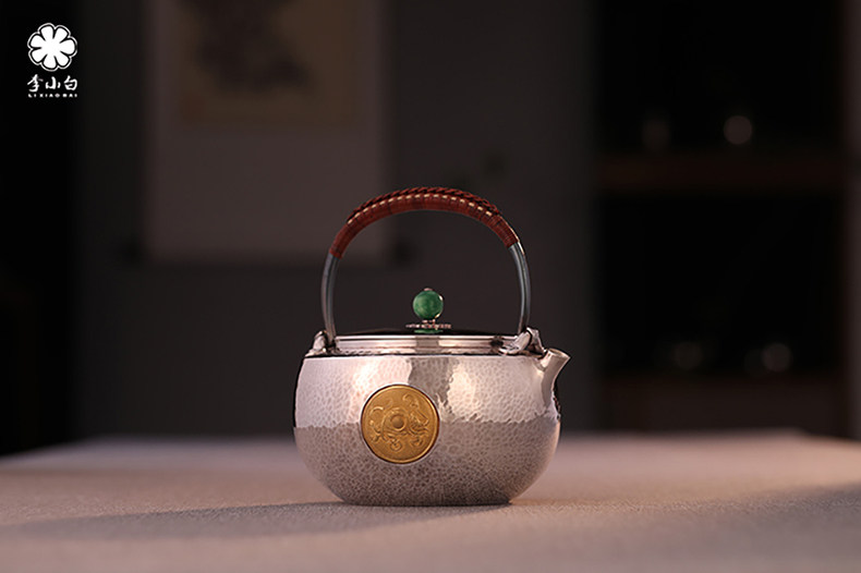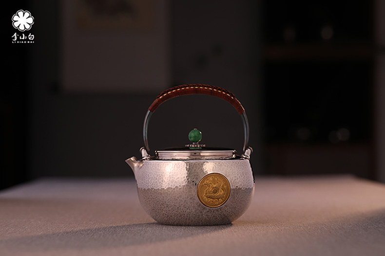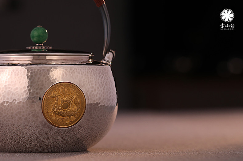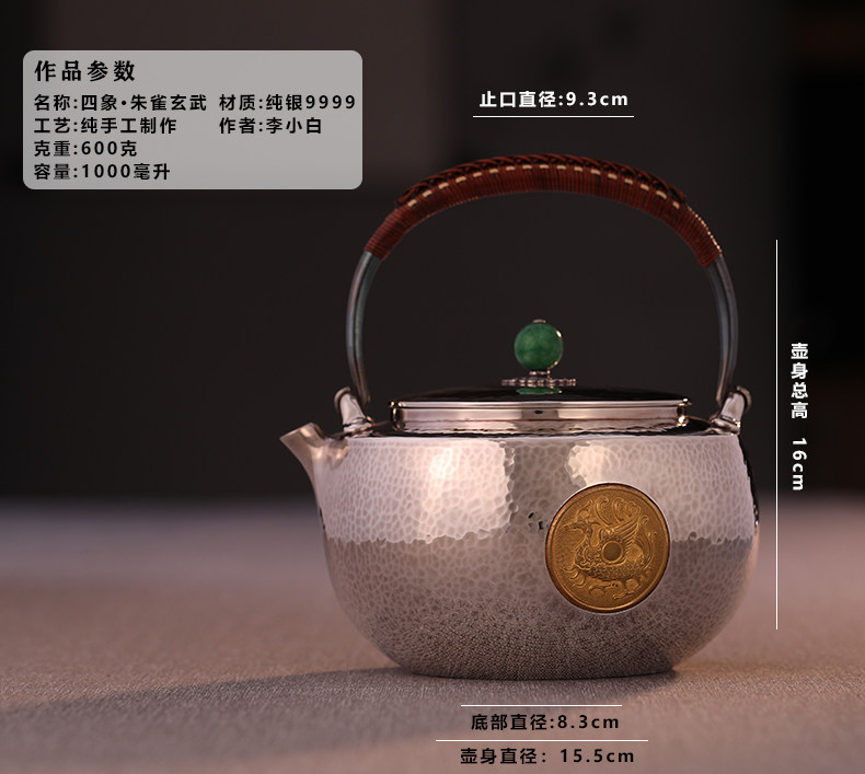 李小白银壶 纯银9999烧水银壶 纯银银壶 金银错 朱雀玄武