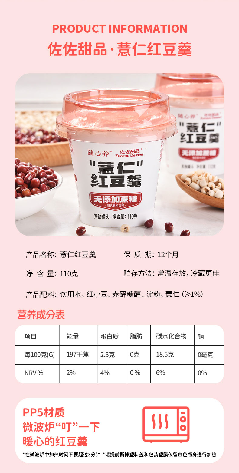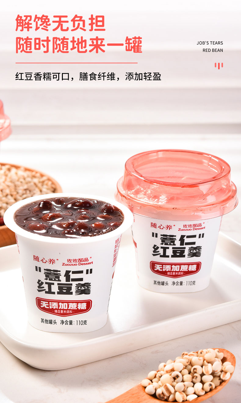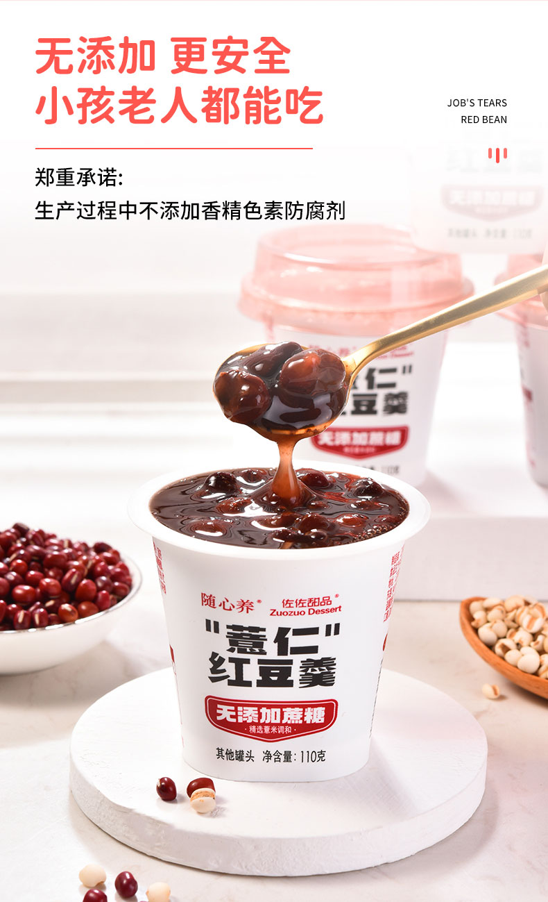 【董老师同款】薏仁红豆羹0蔗糖0脂肪营养健康早餐轻食代餐免煮速食粥即时红豆羹 【0添加蔗糖】110g*10罐