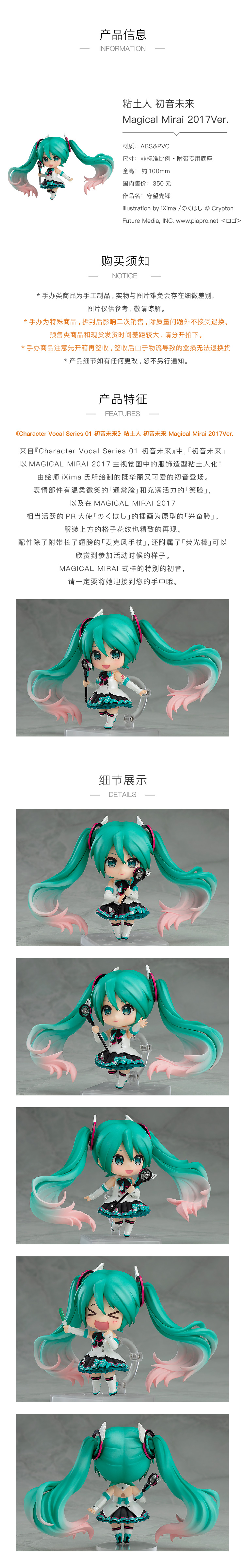 【GSC现货】粘土人 初音未来 Magical Mirai 2017Ver. Character Vocal Series 01 初音未来