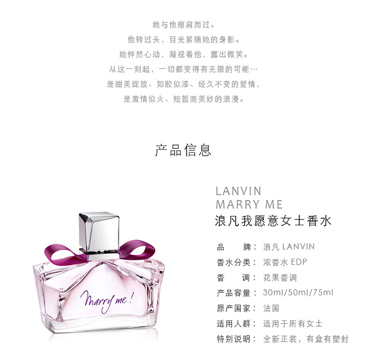 【官方正品】LANVIN/浪凡我愿意女士浓香水 30ml/50ml/75ml