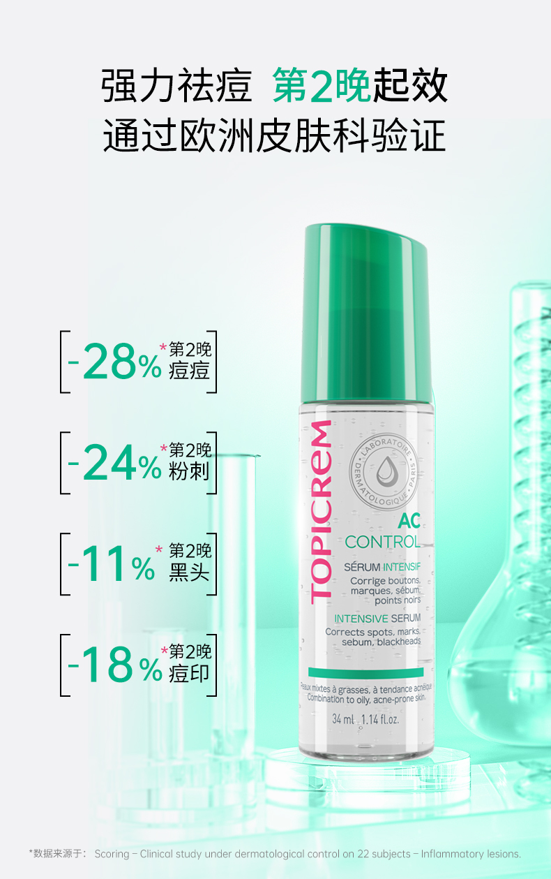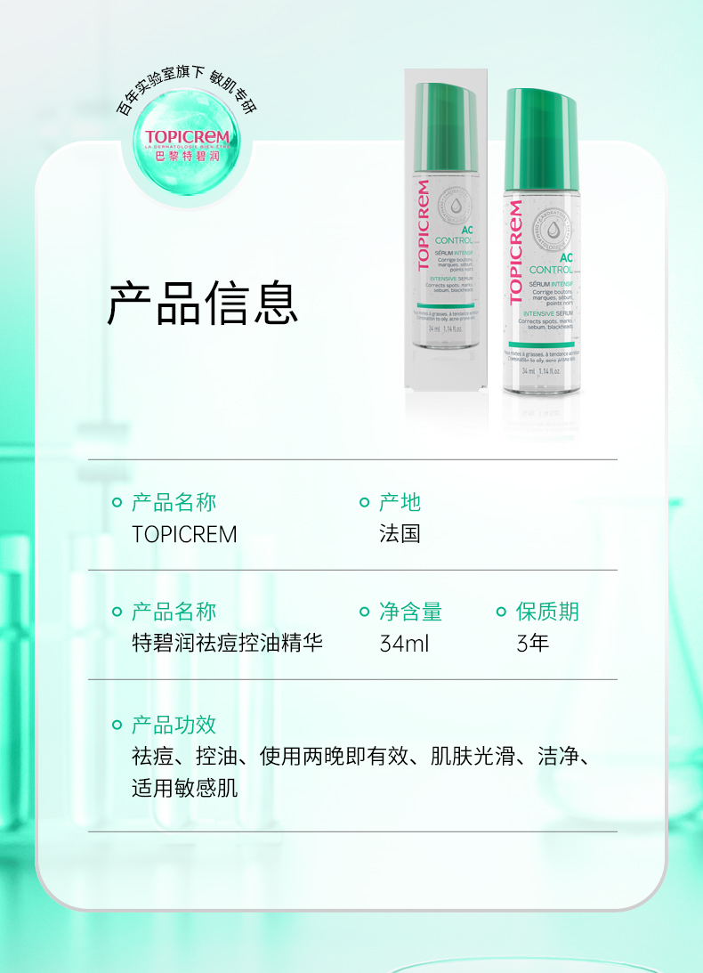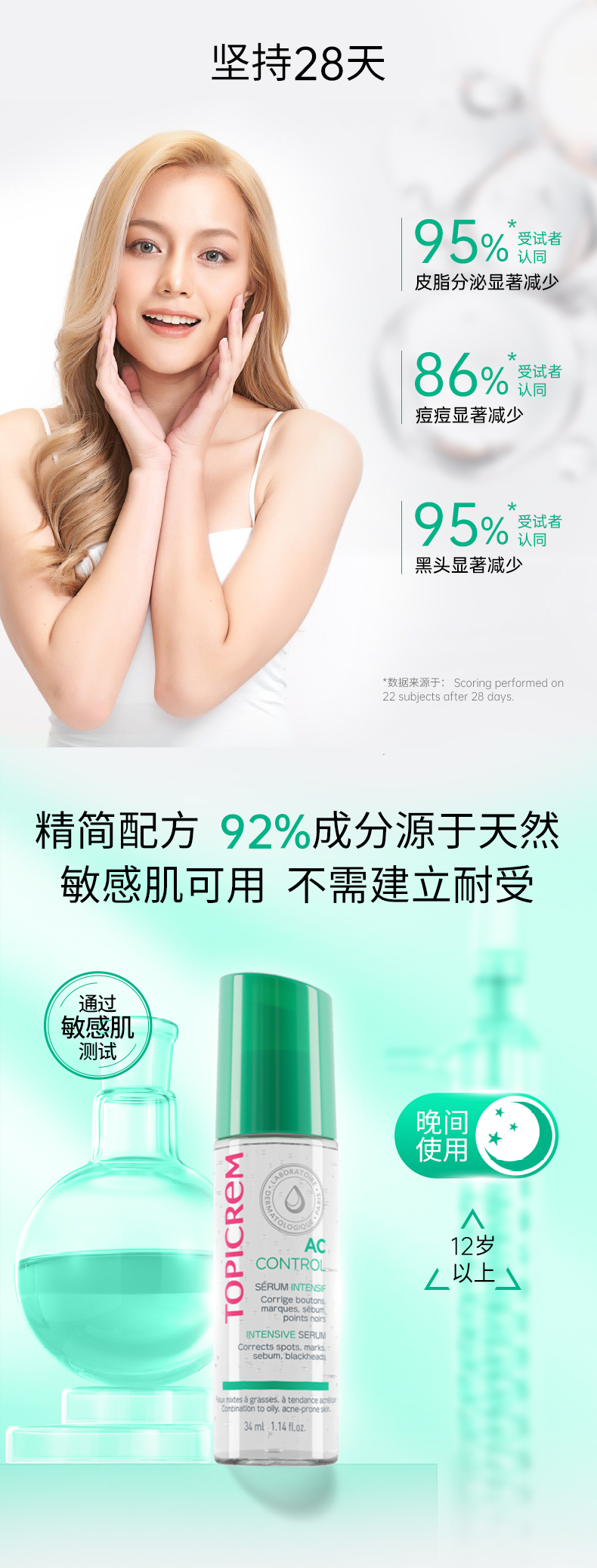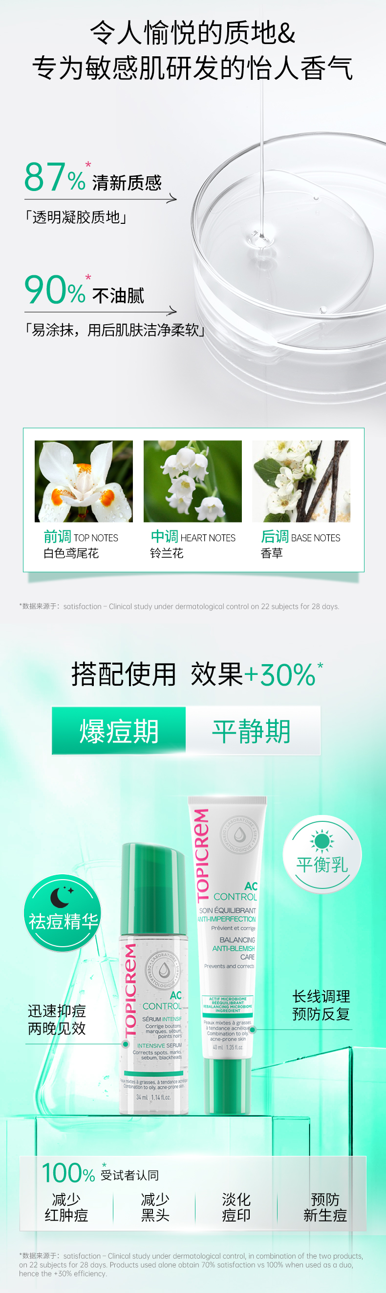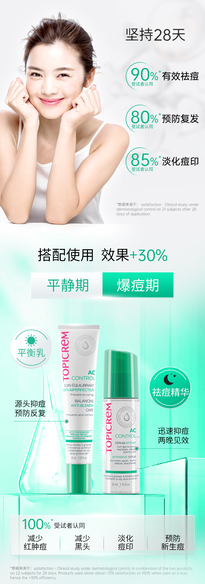 Topicrem特碧润祛痘控油CP 祛痘控油平衡乳 & 祛痘控油精华 全链路根源快速祛痘淡痘印 减少痘痘减少反复 无需建立耐受 敏肌可用