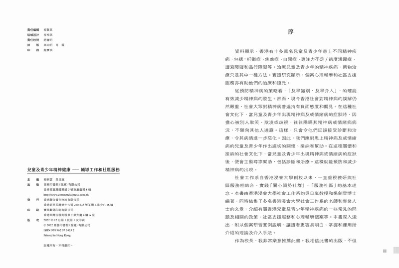 《兒童及青少年精神健康:輔導工作和社區服務》