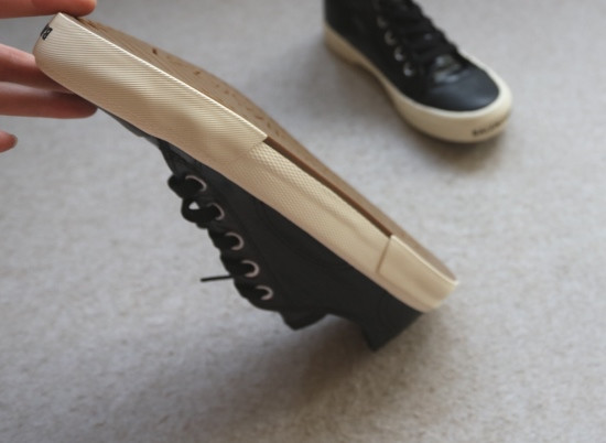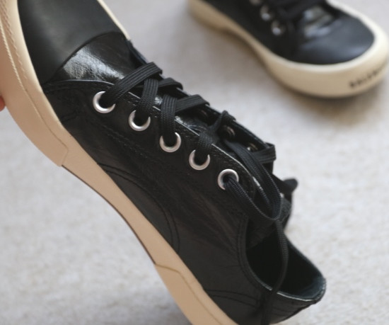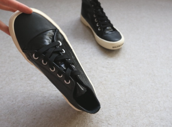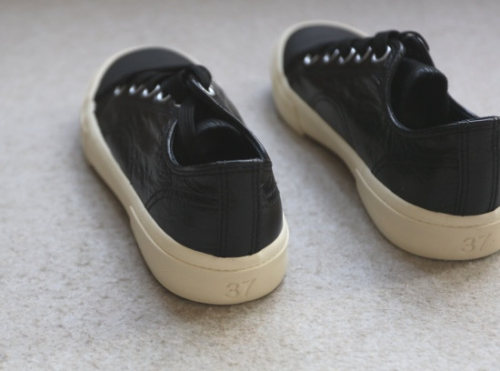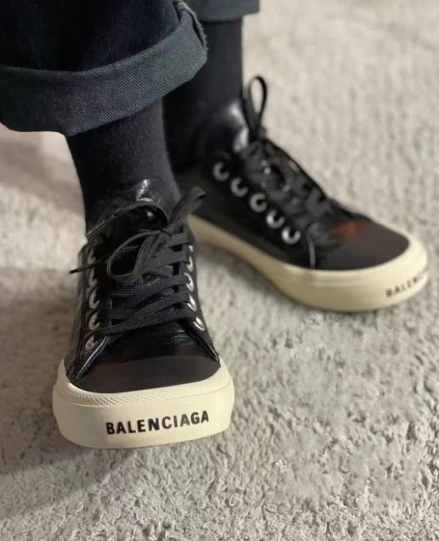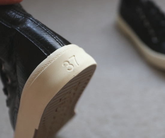 鞋头微翘 黑色巴黎字母是轻微突起的 后跟码数字母 是凹进去的