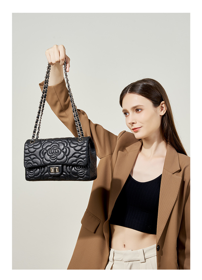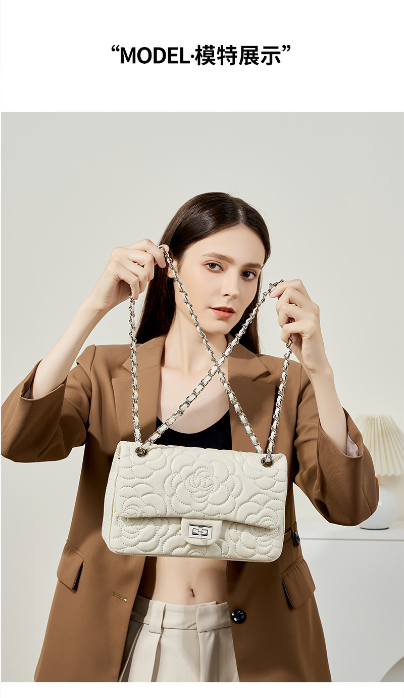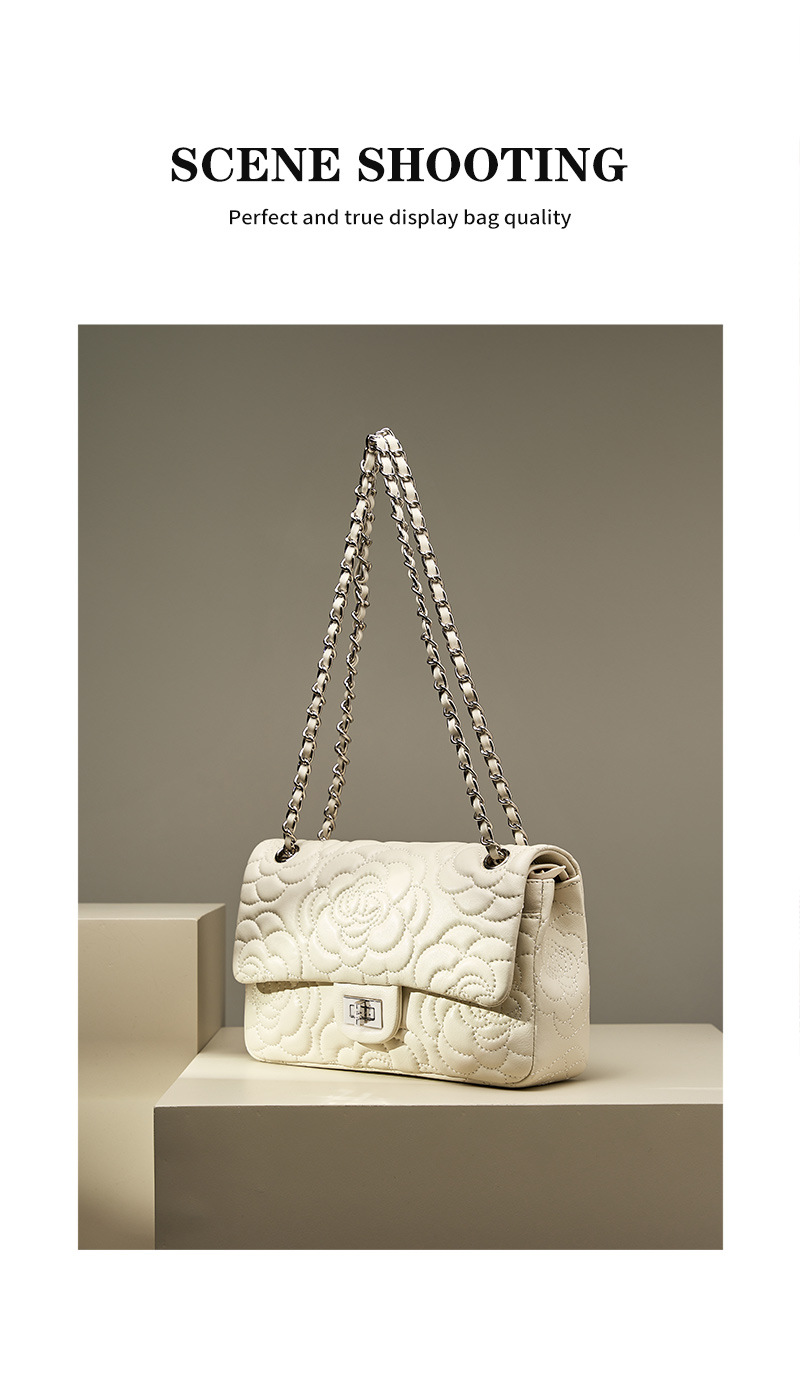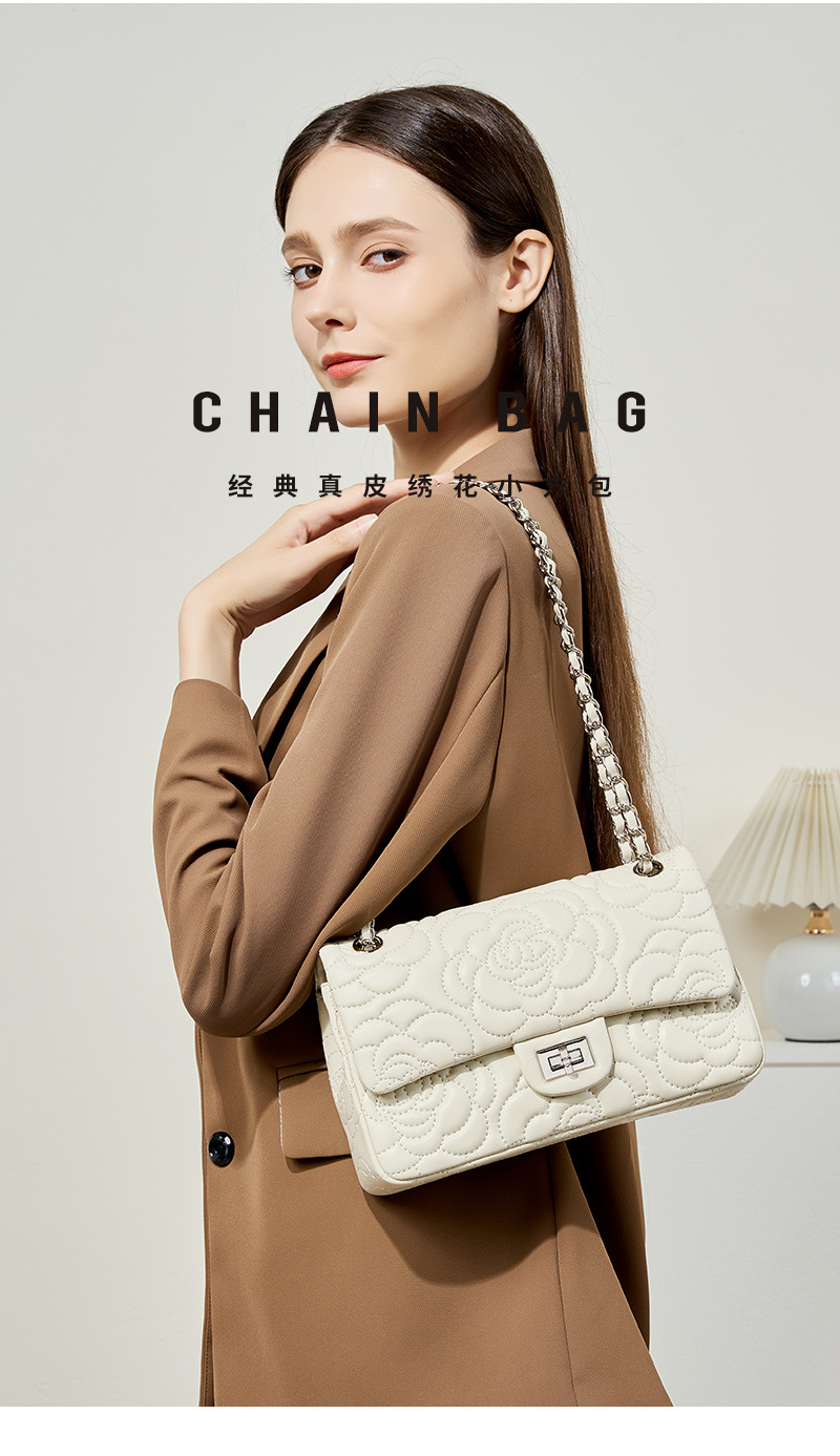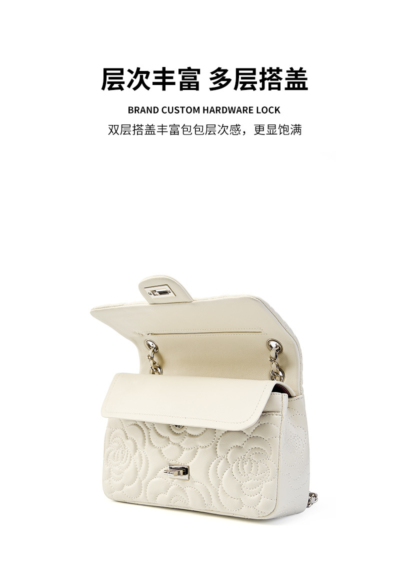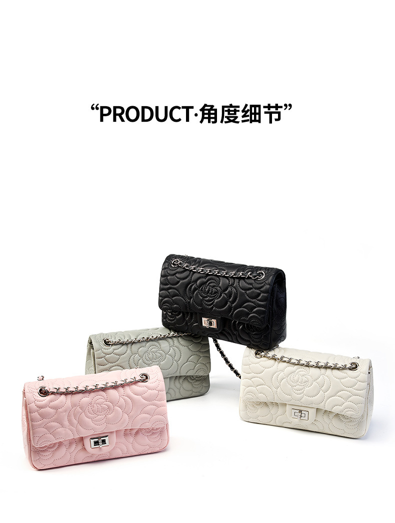 小香风山茶花头层高山羊皮,真皮菱格质感洋气链条包单肩斜挎包QSL- 2780