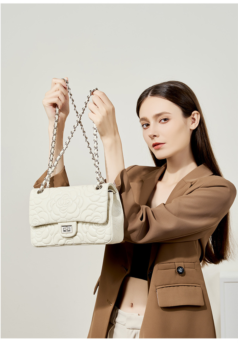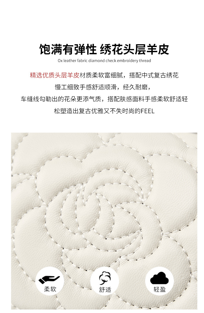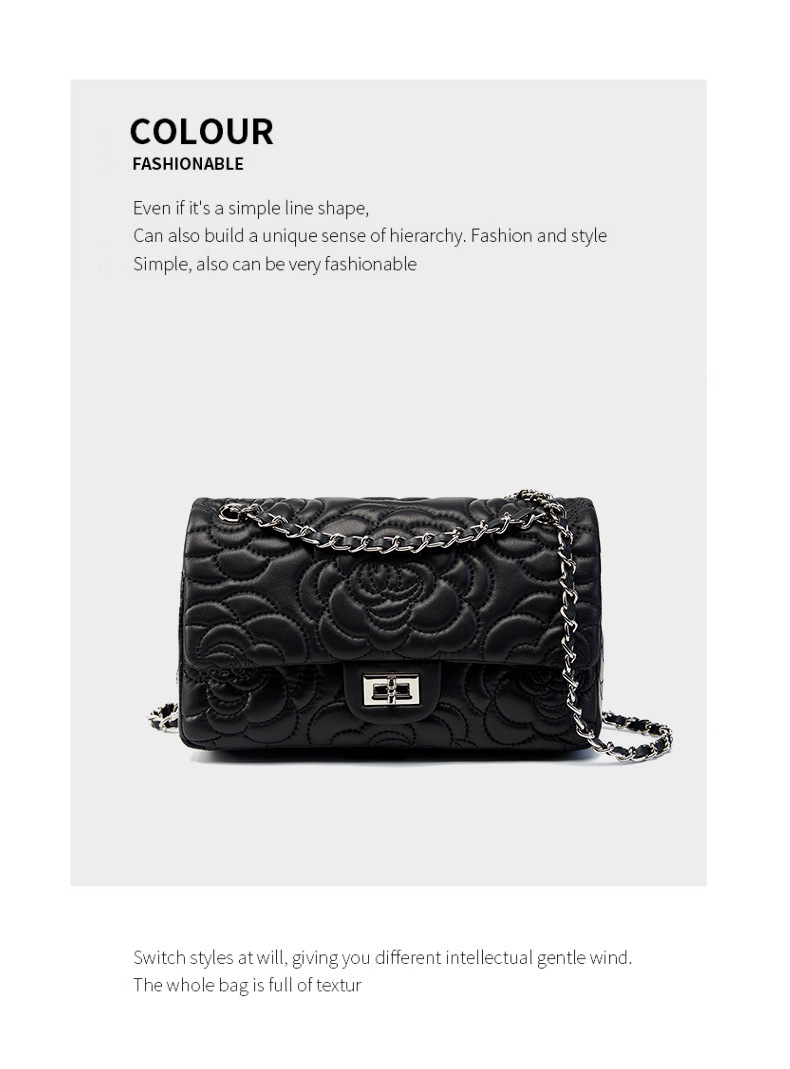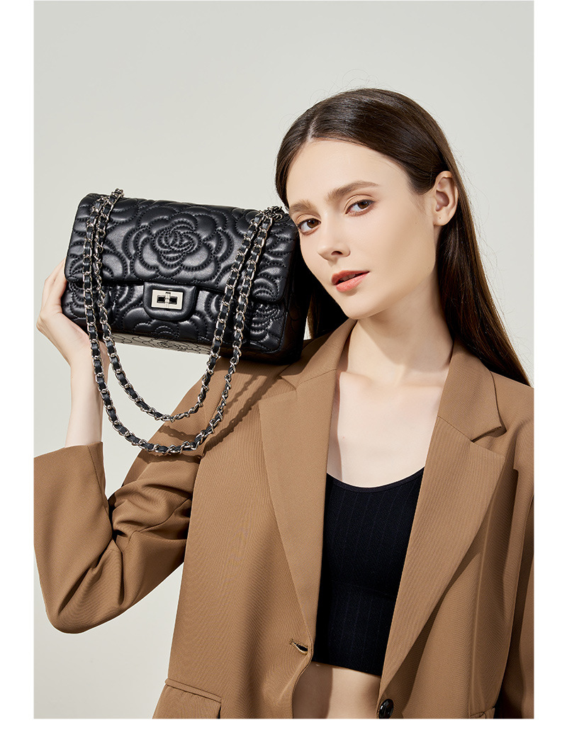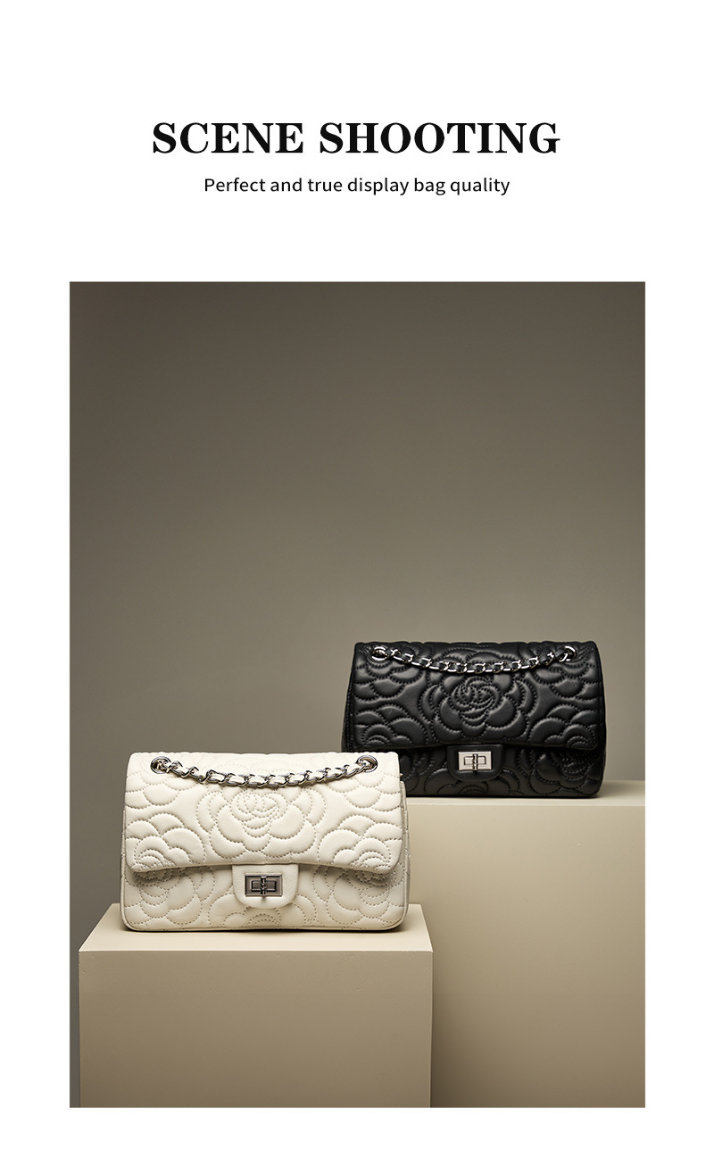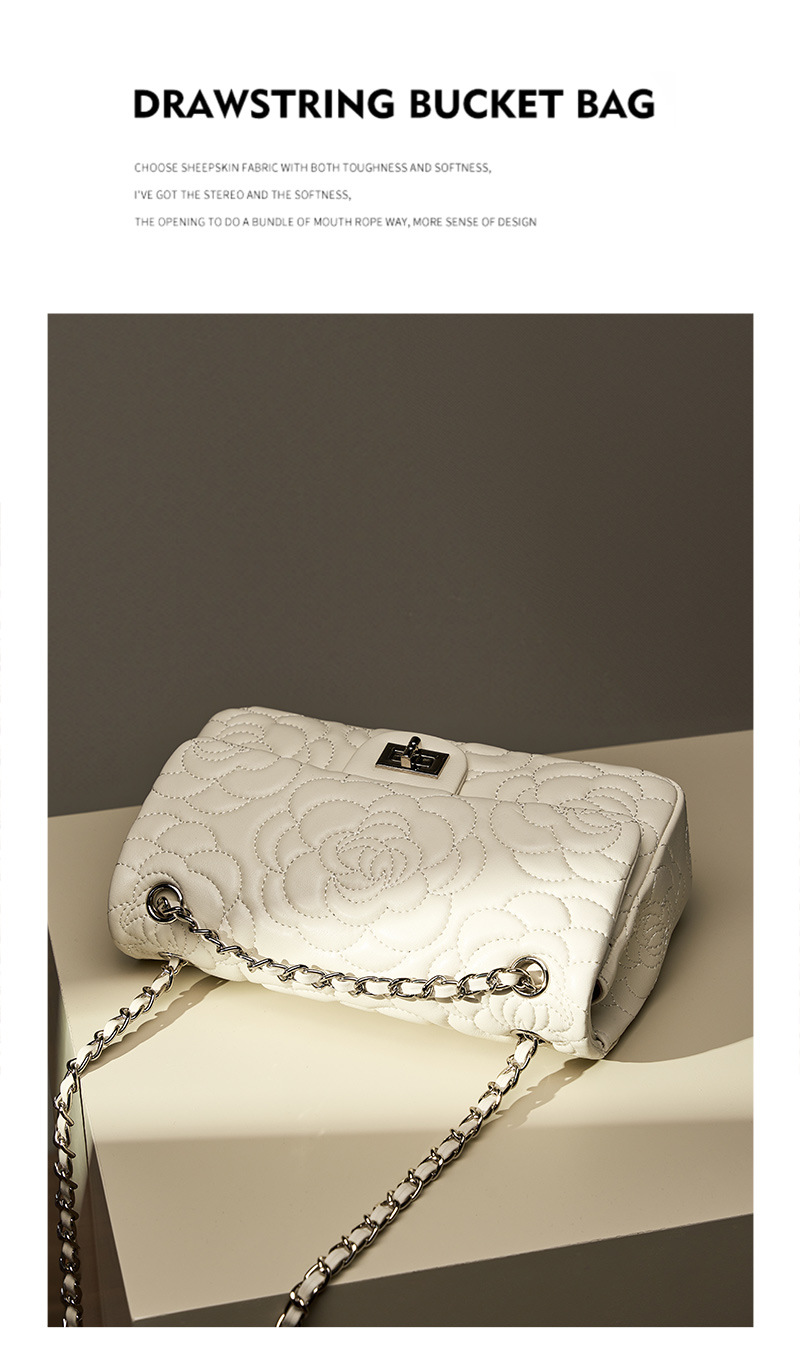 小香风山茶花头层高山羊皮,真皮菱格质感洋气链条包单肩斜挎包QSL- 2780
