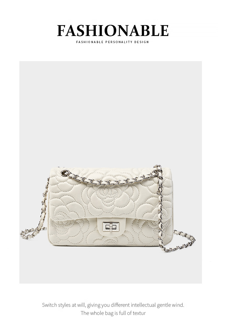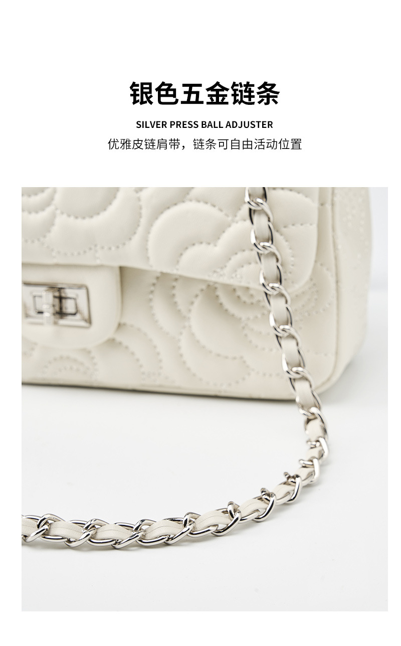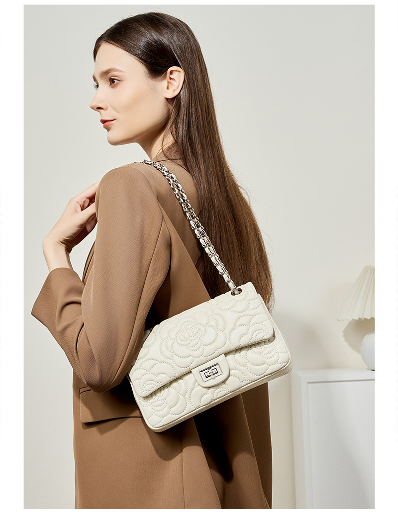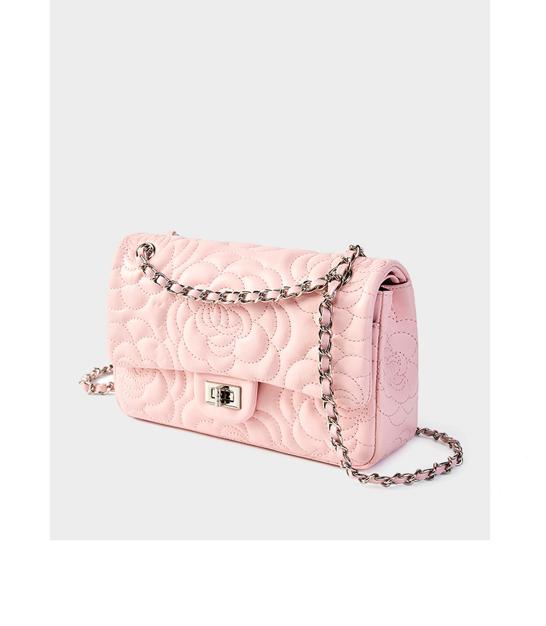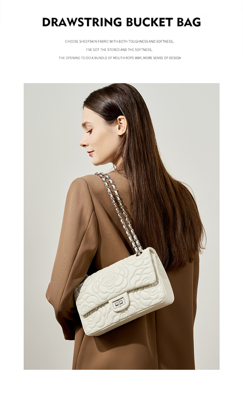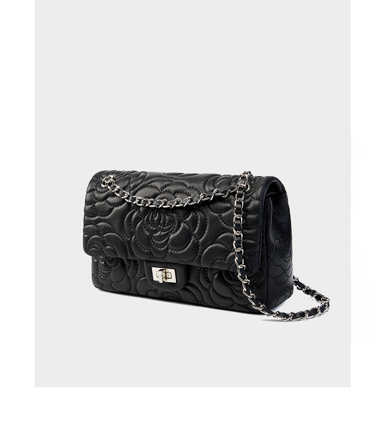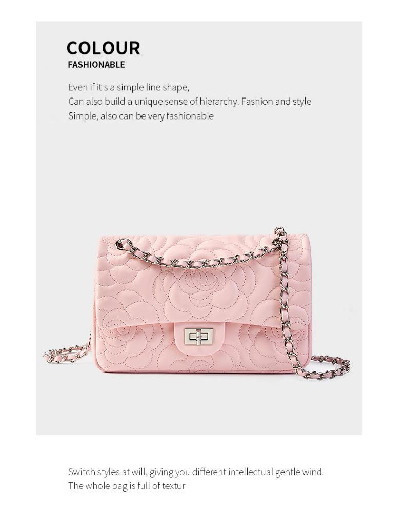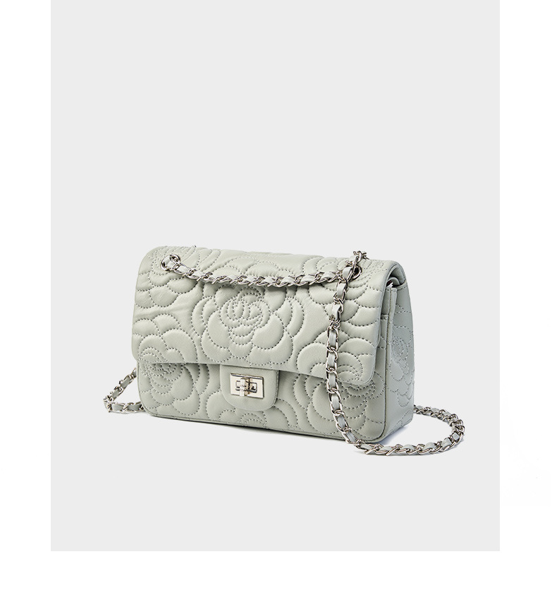 小香风山茶花头层高山羊皮,真皮菱格质感洋气链条包单肩斜挎包QSL- 2780