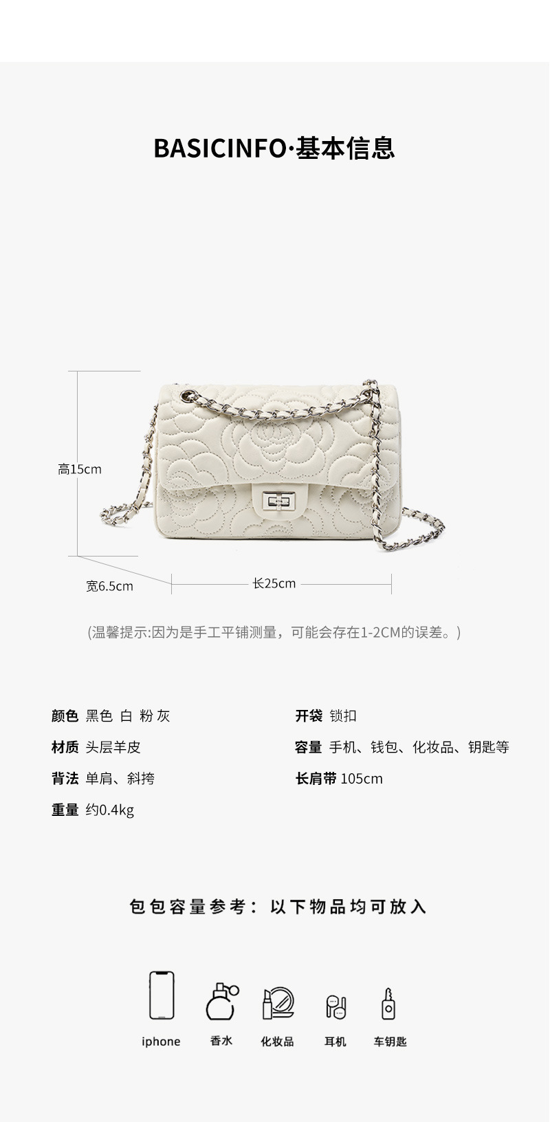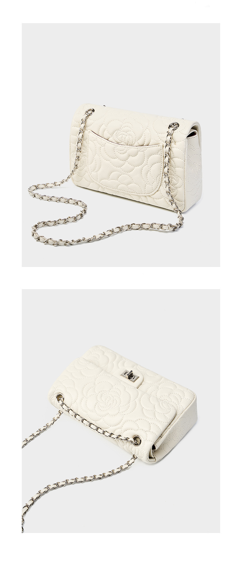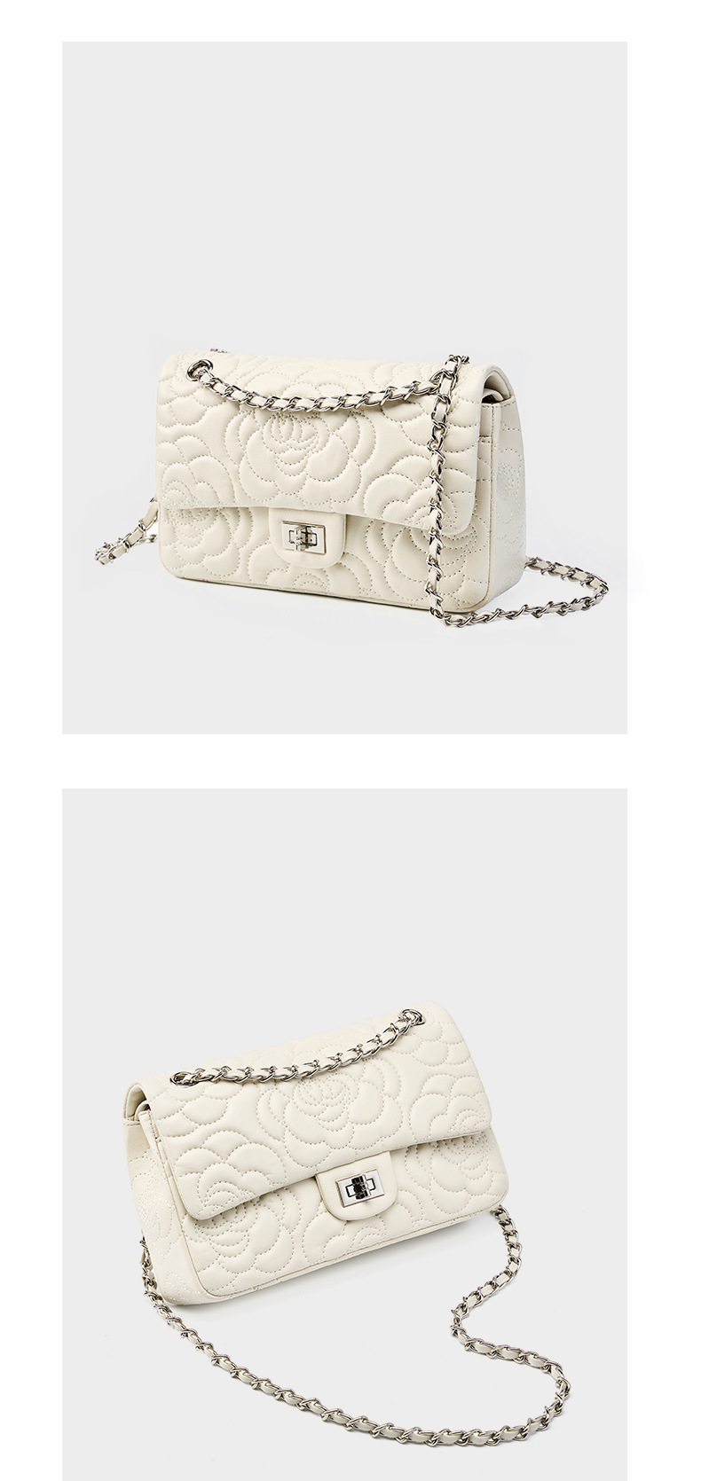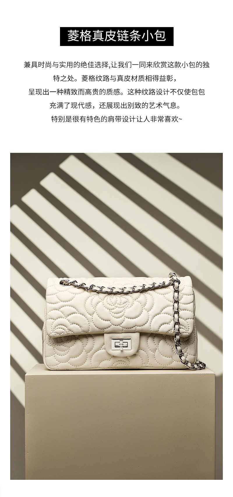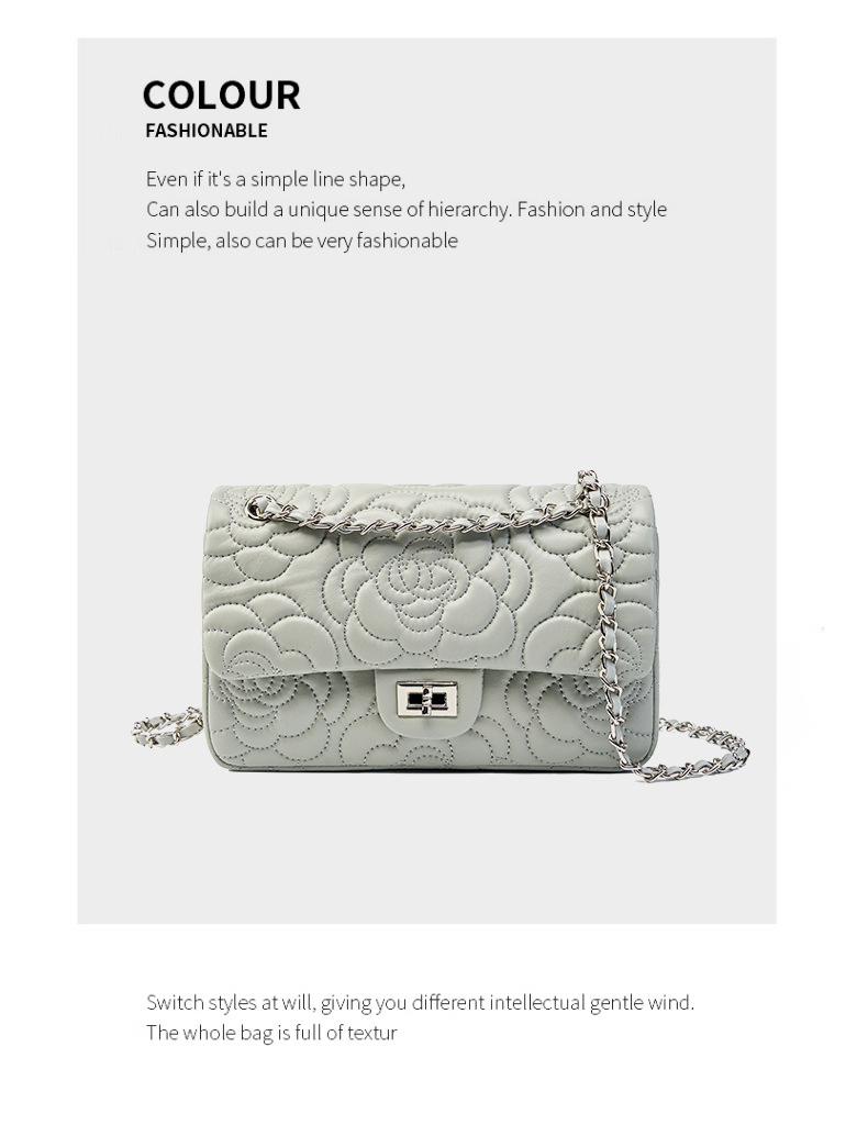 小香风山茶花头层高山羊皮,真皮菱格质感洋气链条包单肩斜挎包QSL- 2780