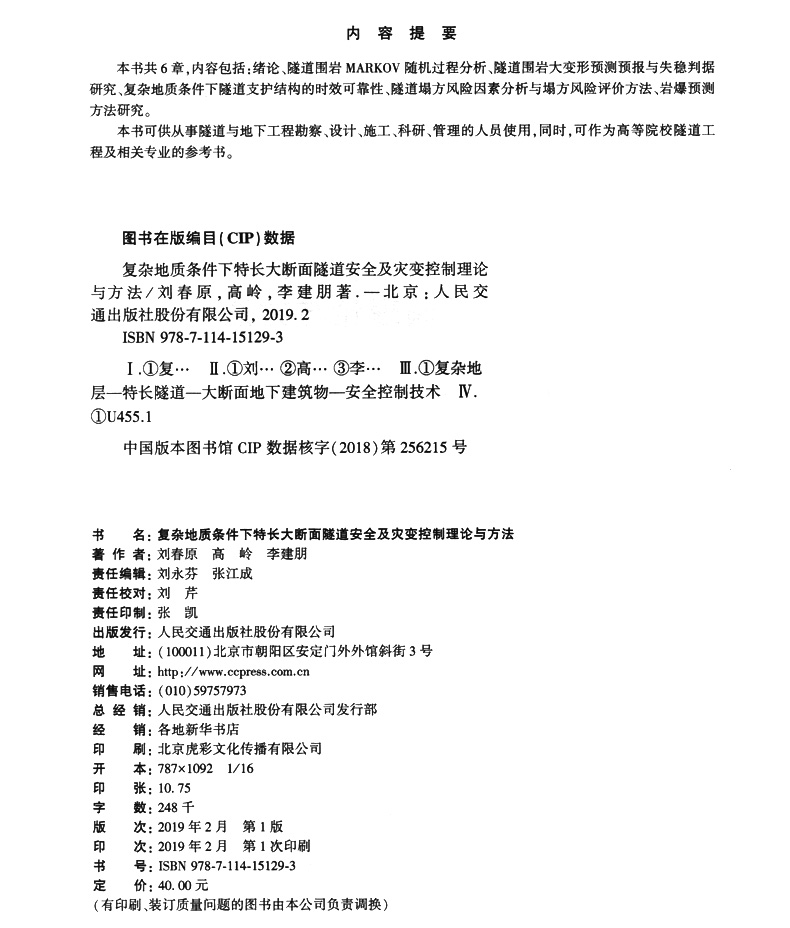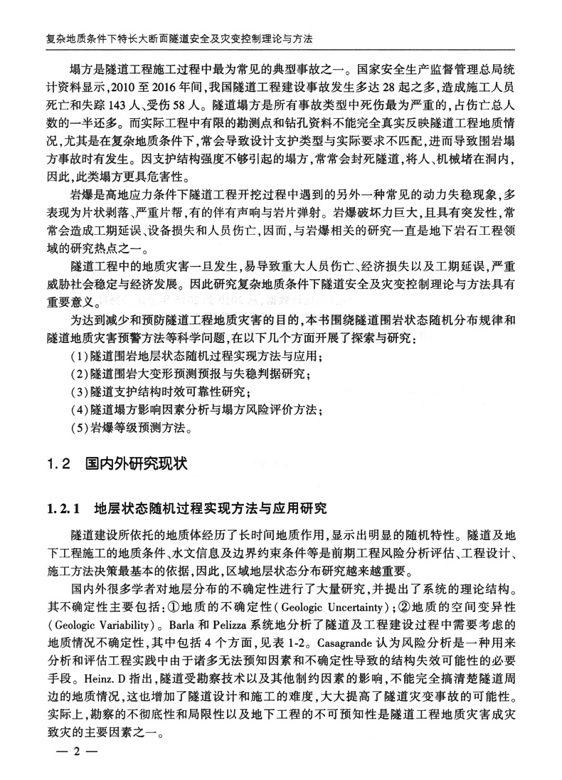 书名:复杂地质条件下特长大断面隧道安全及灾变控制理论与方法