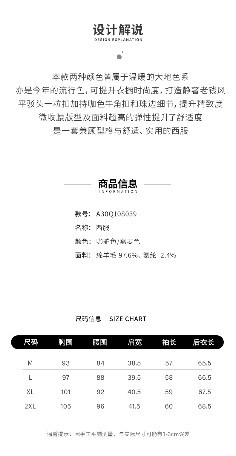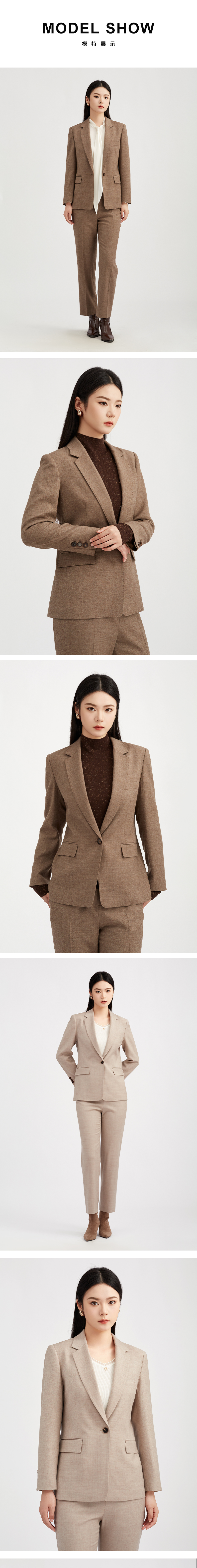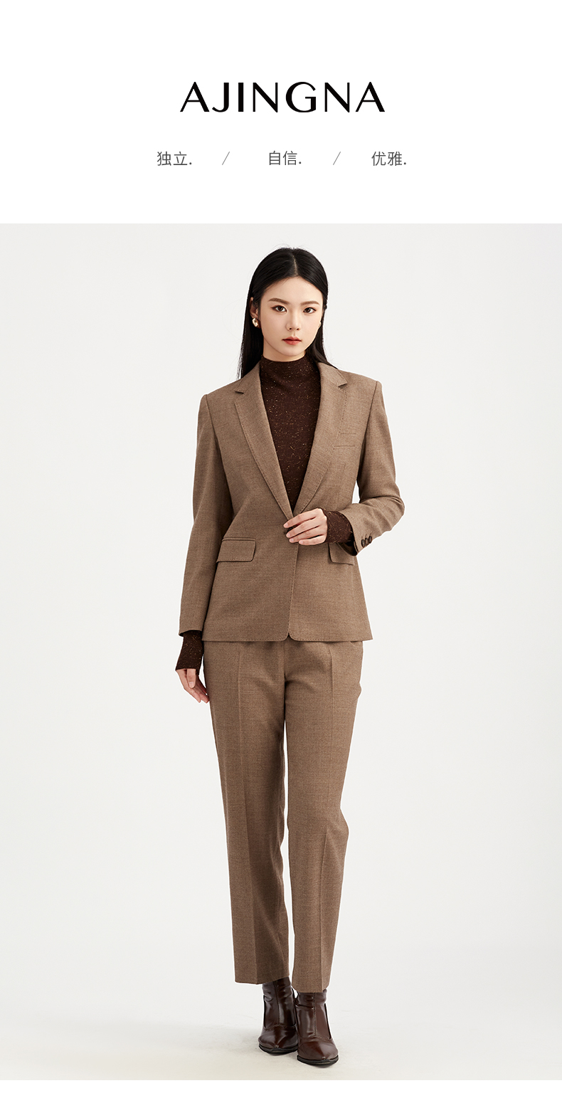 【商场同款】阿菁娜秋季新款静奢老钱风西服大地色系一粒扣牛角扣珠边设计微收腰弹力A30Q108039