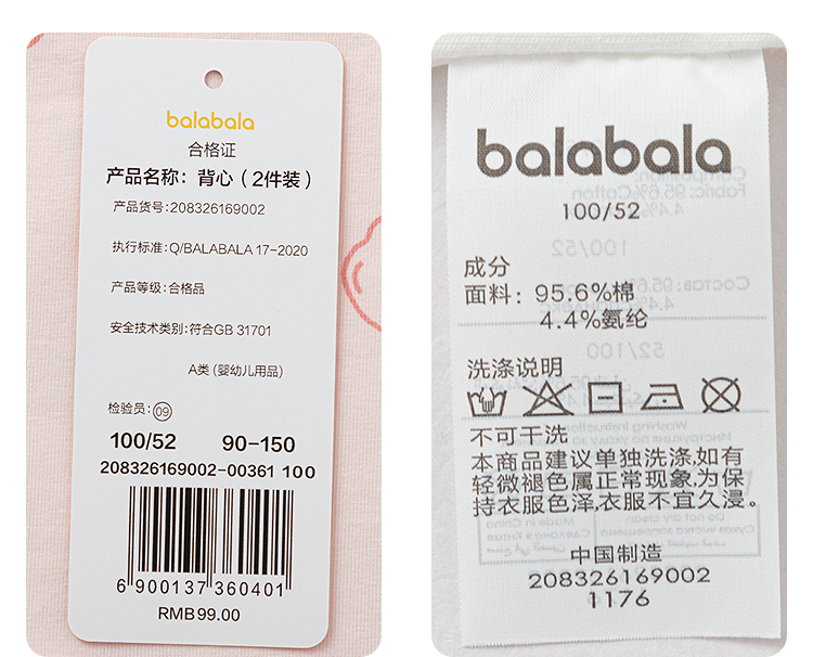 【balaOne】巴拉巴拉宝宝背心2026新款女童吊带儿童小内衣两件装