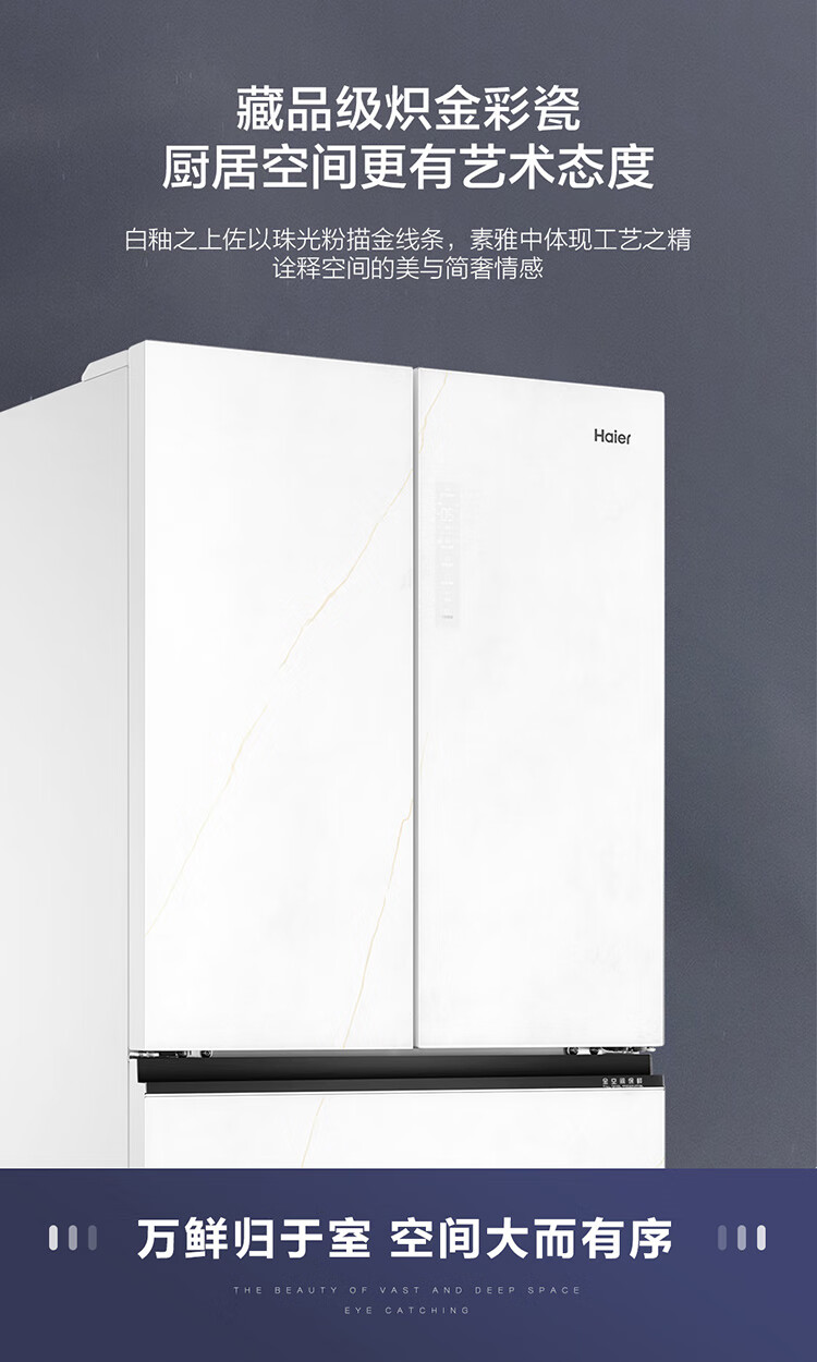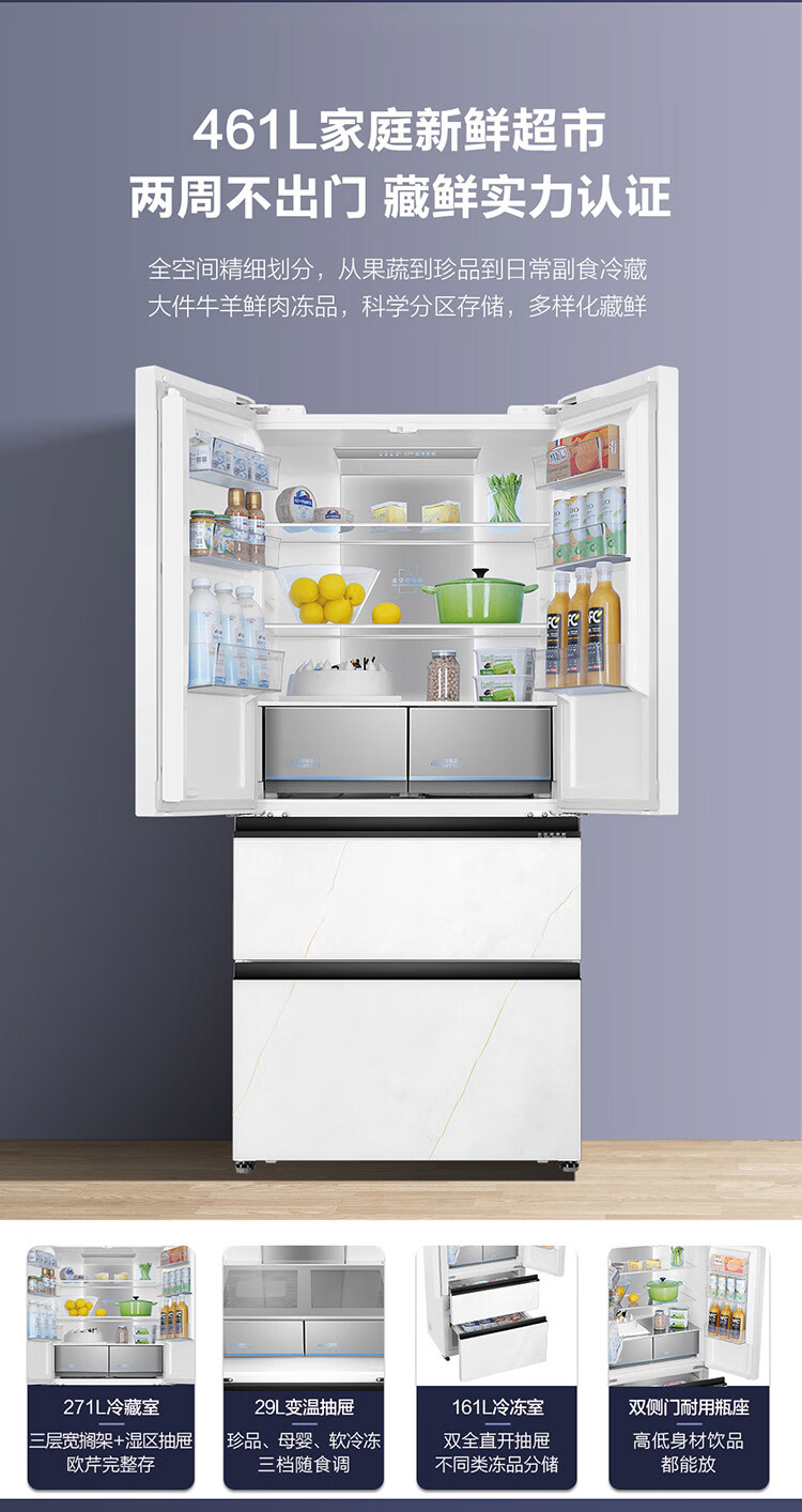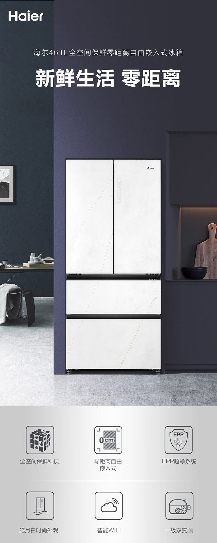 海尔(Haier)461升 全空间保鲜 一级双变频节能 变温超薄 法式多门 零嵌入 智能wifi EPP超净系统 BCD-461WGHFD14WYU1