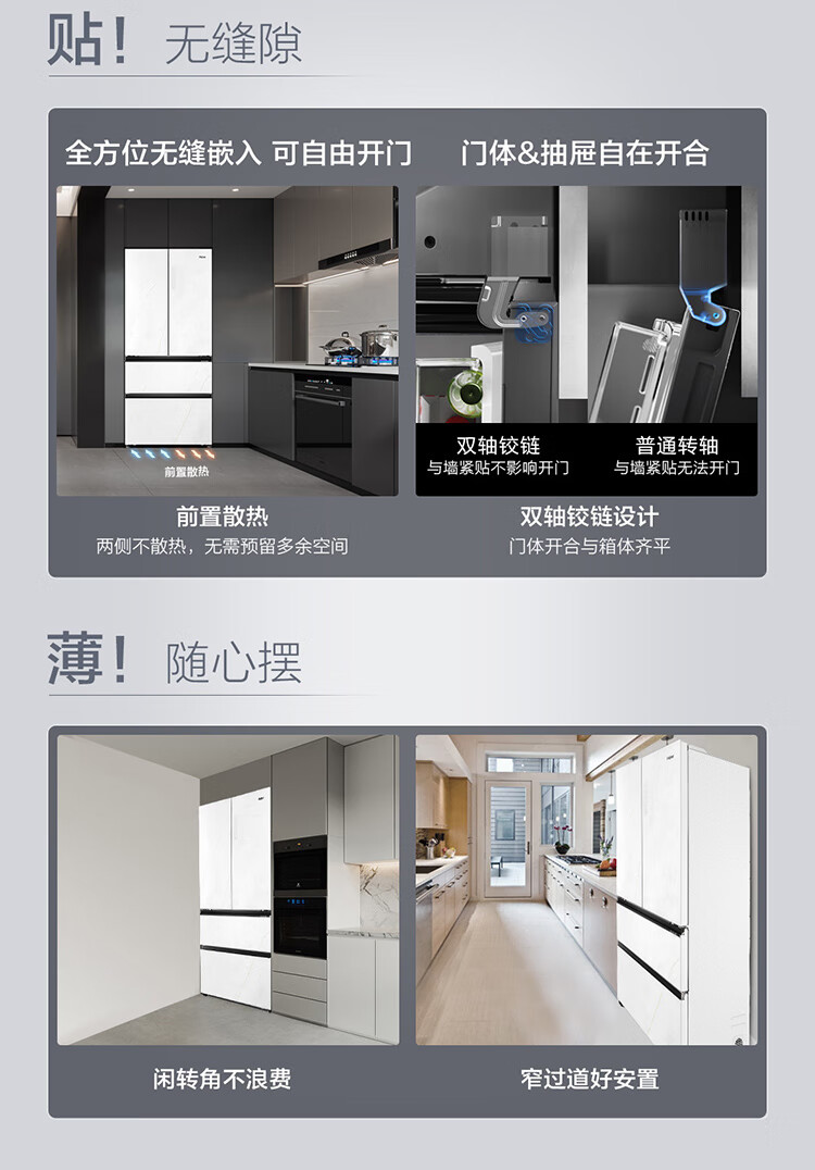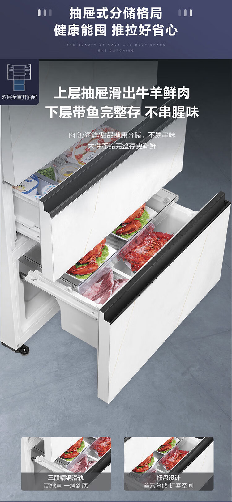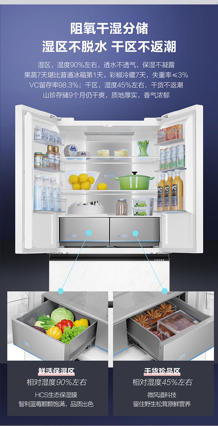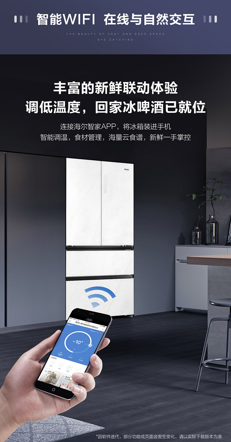 海尔(Haier)461升 全空间保鲜 一级双变频节能 变温超薄 法式多门 零嵌入 智能wifi EPP超净系统 BCD-461WGHFD14WYU1