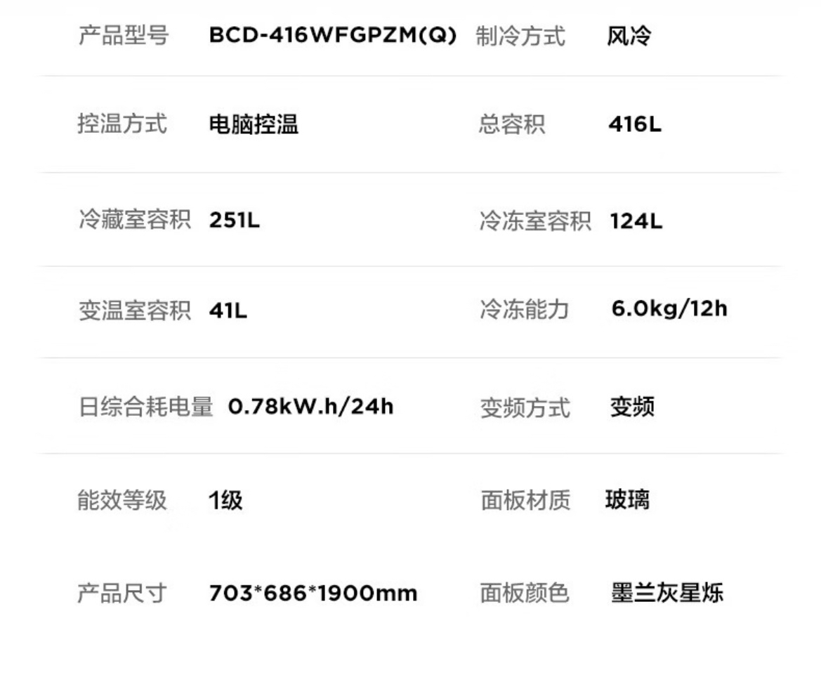 美的(Midea)冰箱 BCD-416WFGPZM(Q)