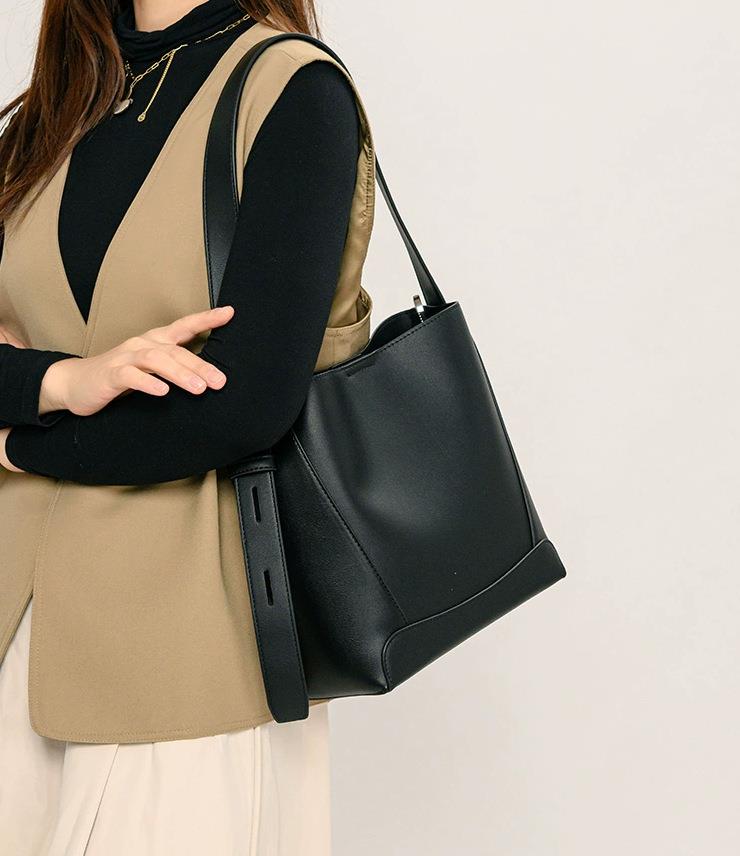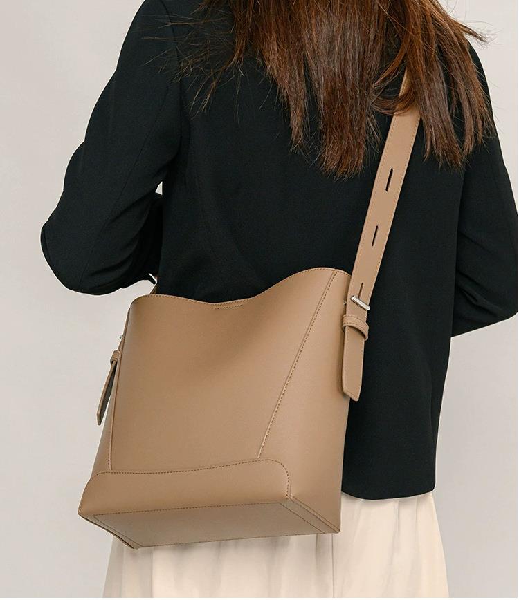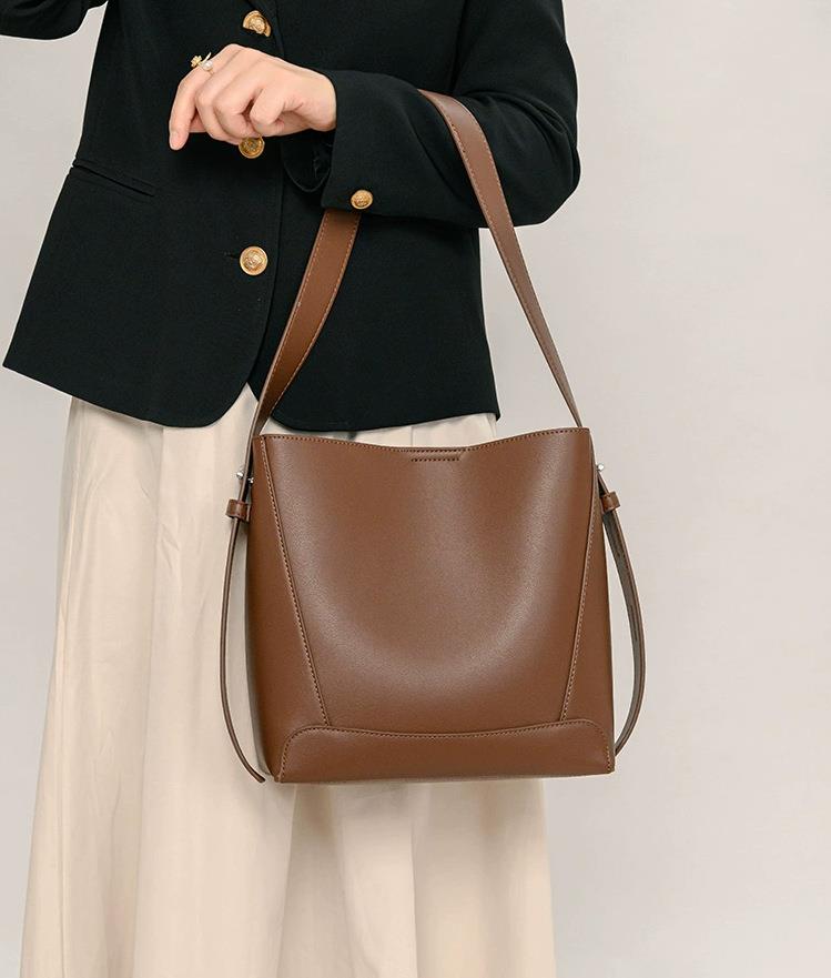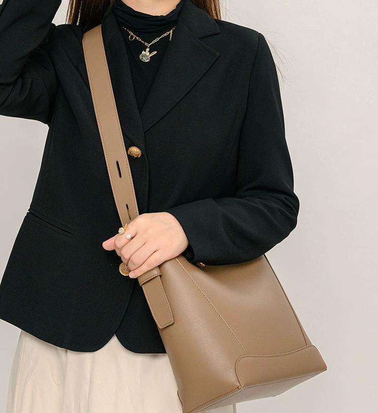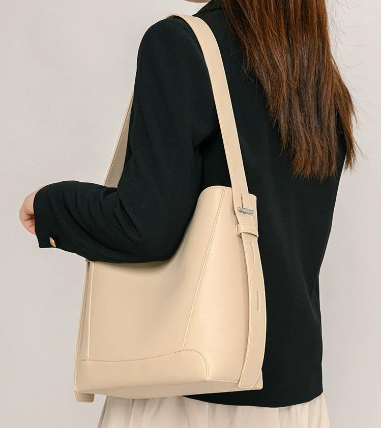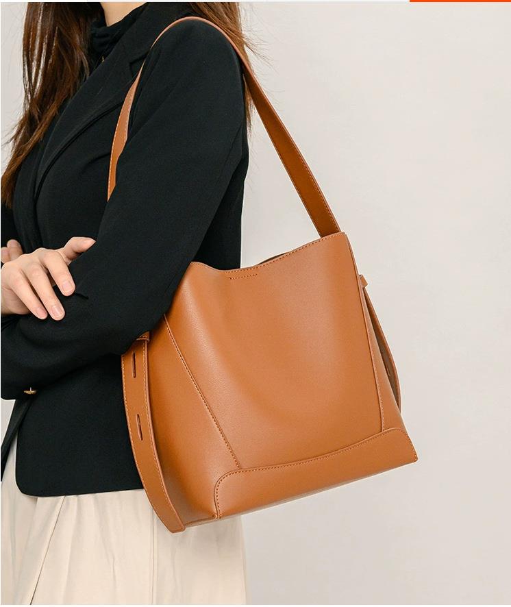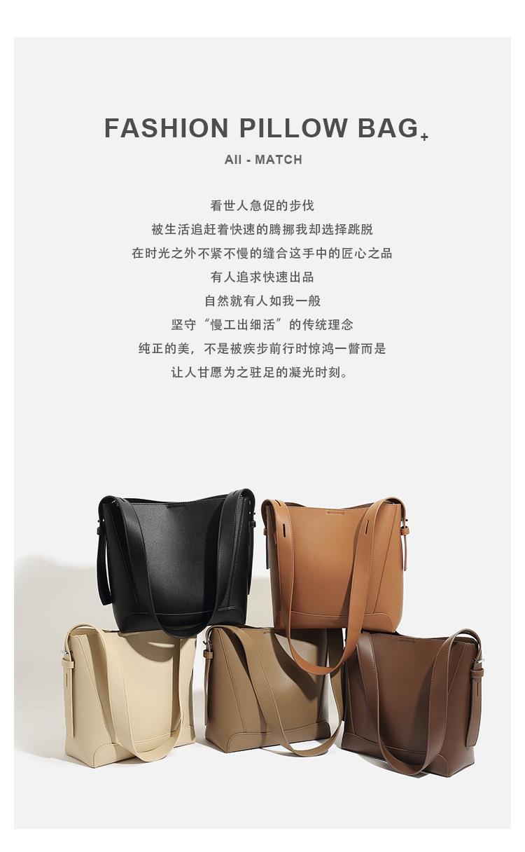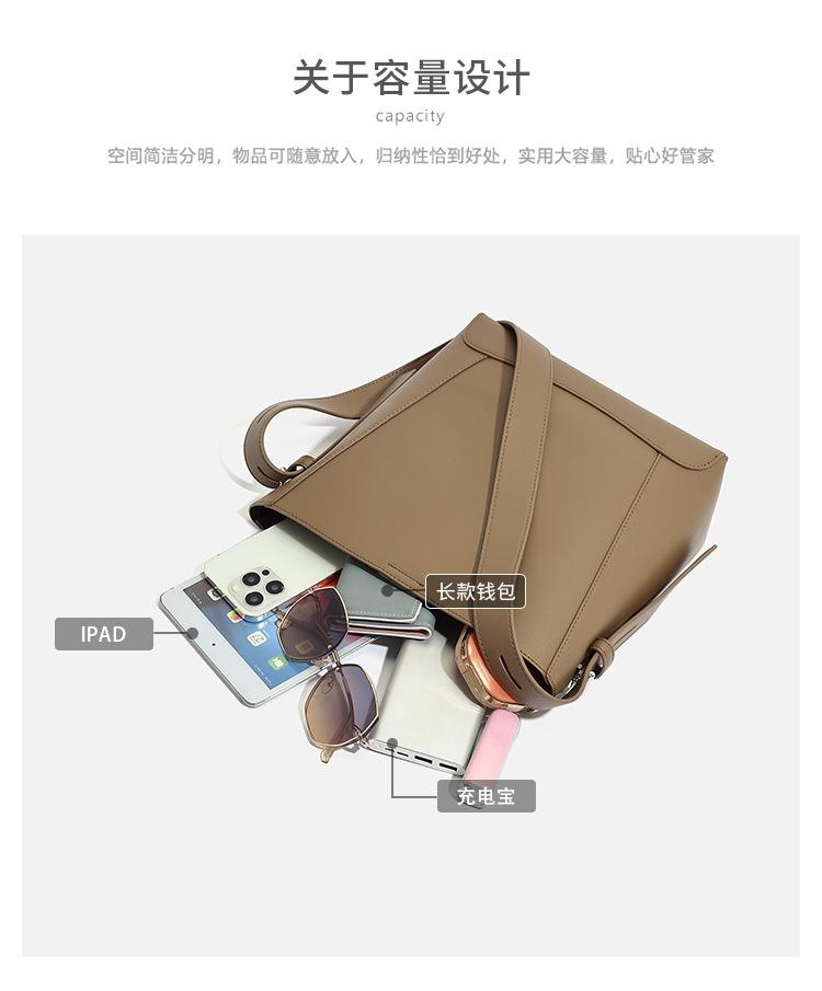 软皮水桶包简约大容量托特包通勤腋下包2023新款百搭单肩斜挎包潮