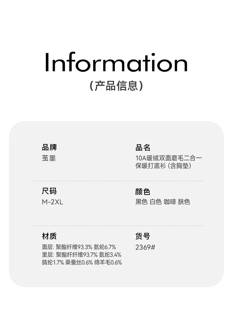 茧墨 10A暖绒双面磨毛二合一保暖打底衫(含胸垫)