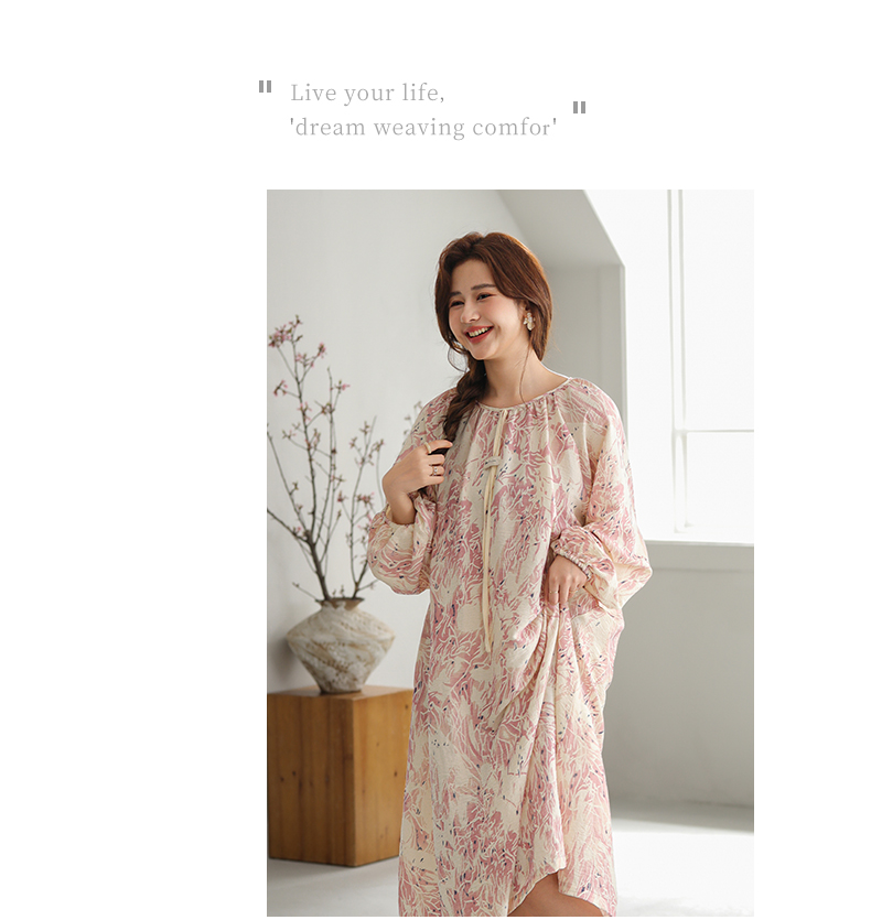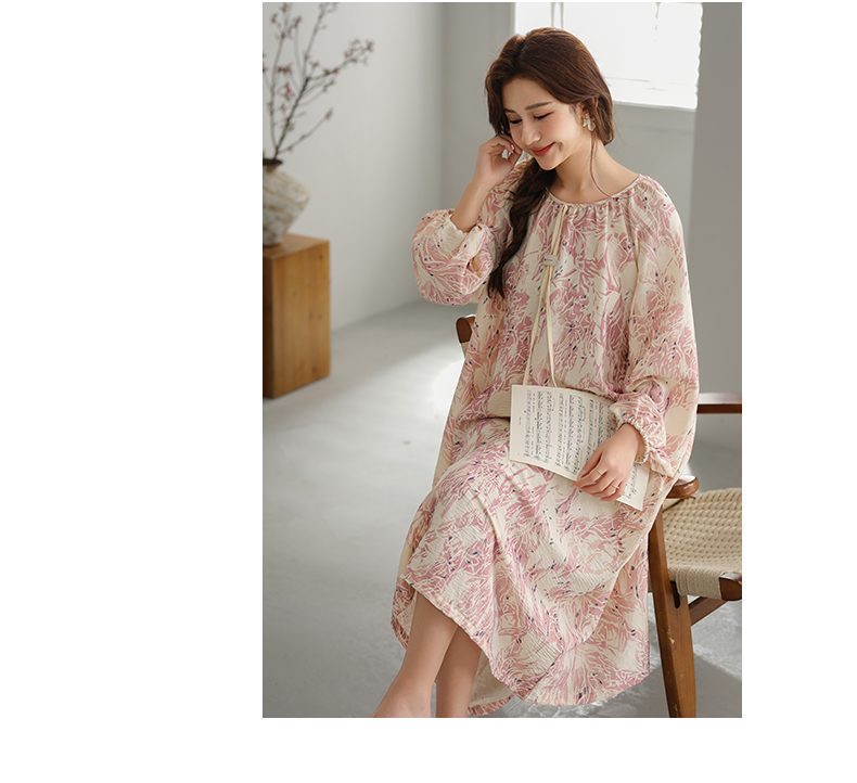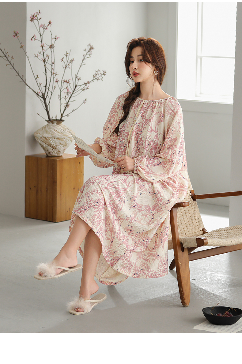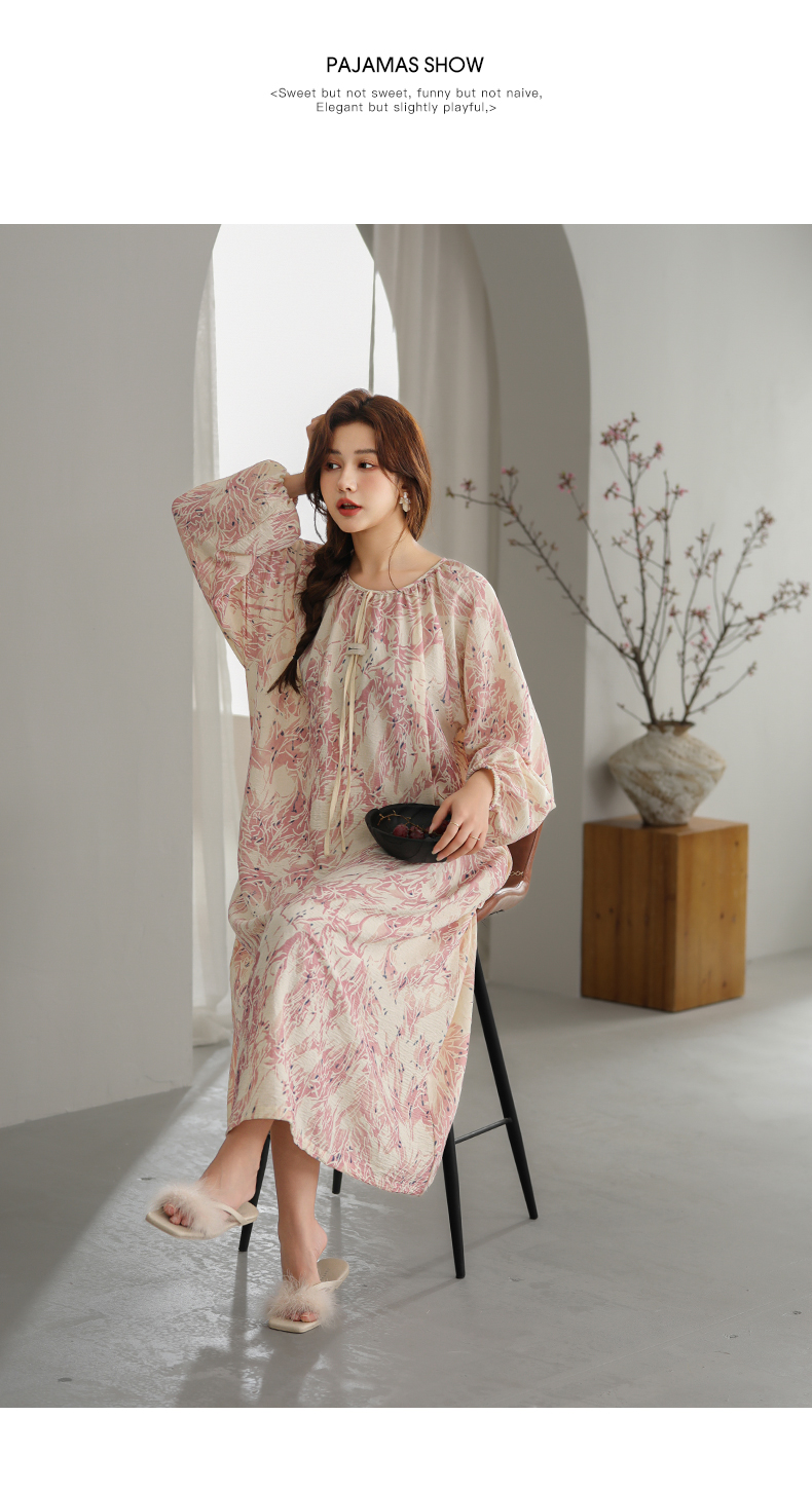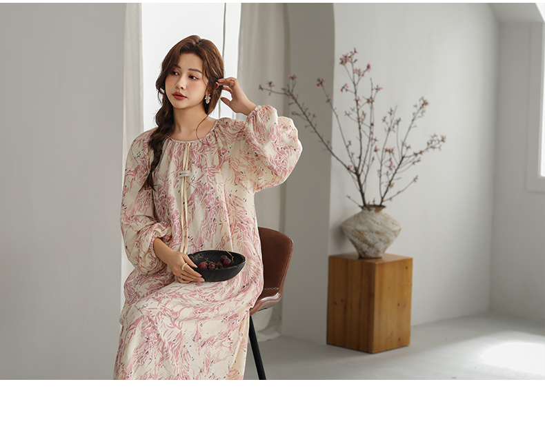 可人儿小众设计新款泡泡绵女士睡裙春秋长袖少女睡衣可外穿连衣裙