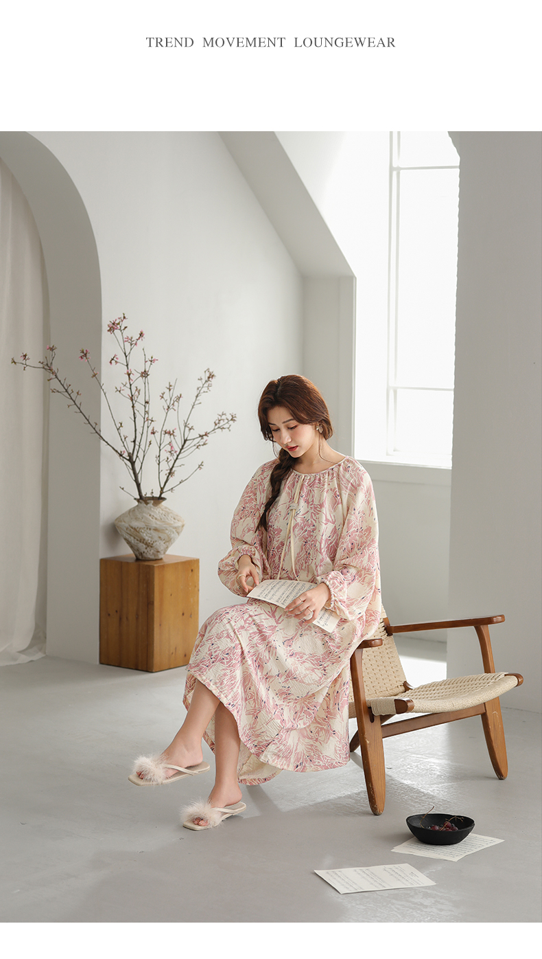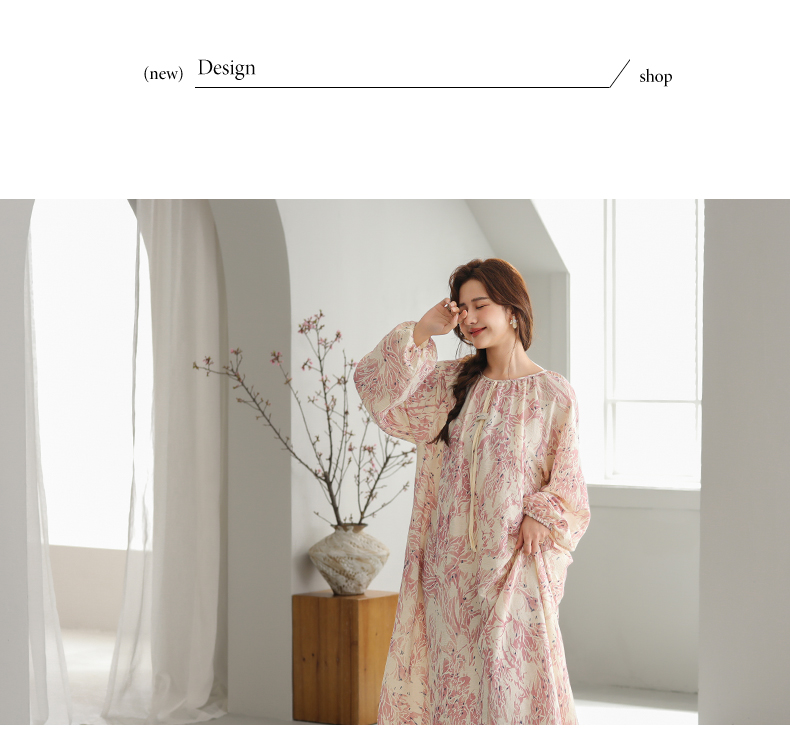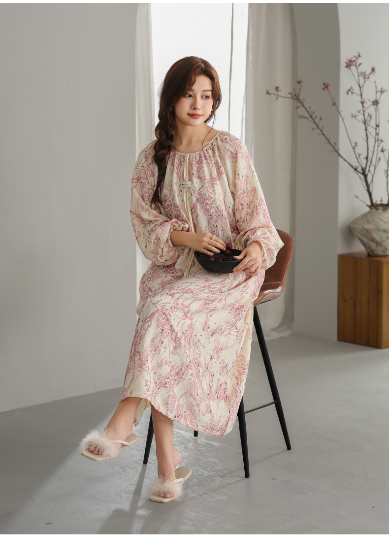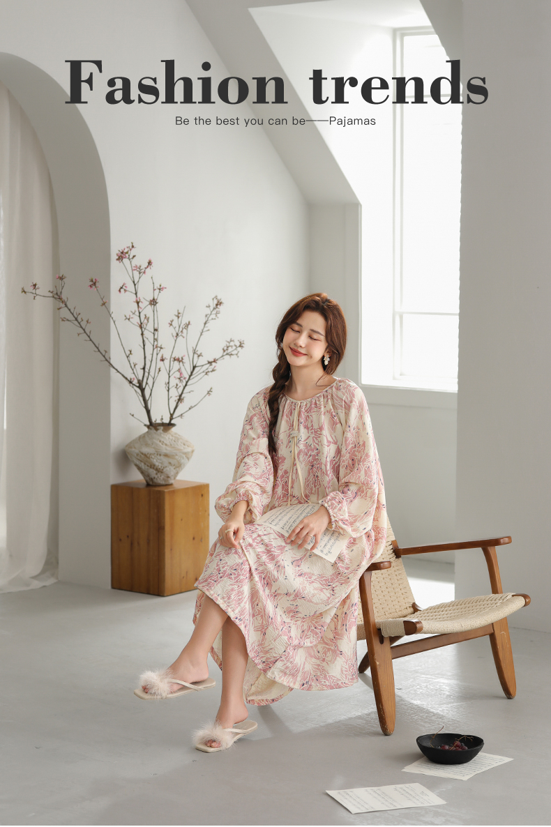可人儿小众设计新款泡泡绵女士睡裙春秋长袖少女睡衣可外穿连衣裙