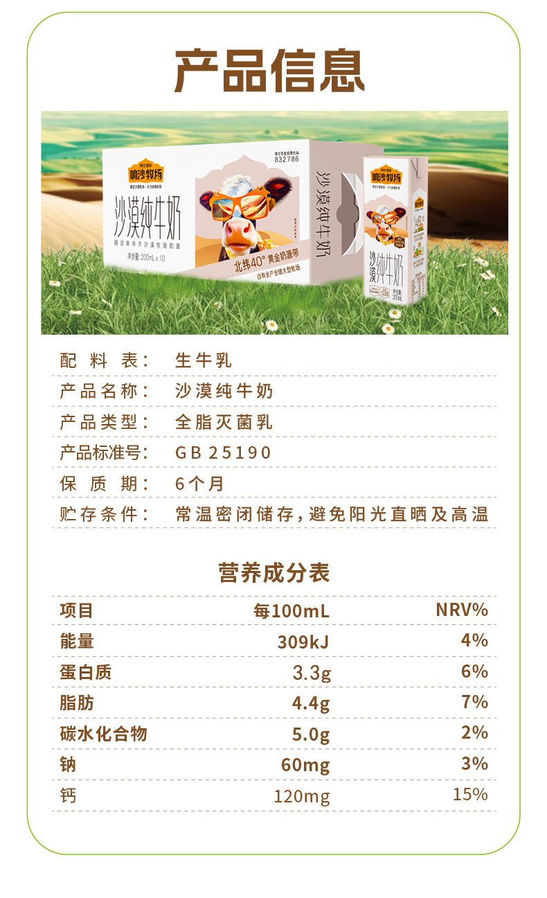 【产品】:沙漠纯牛奶