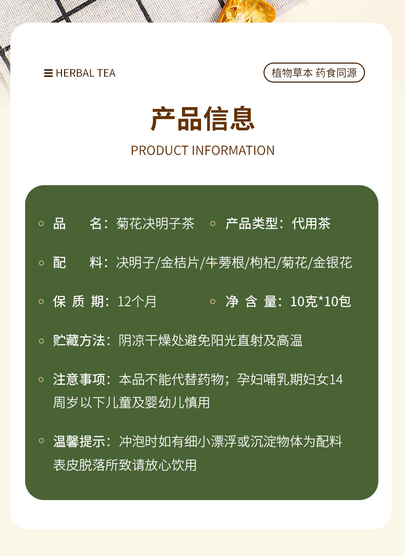 菊花决明子茶 熬夜加班养生花茶枸杞菊花茶独立小茶包原料可见