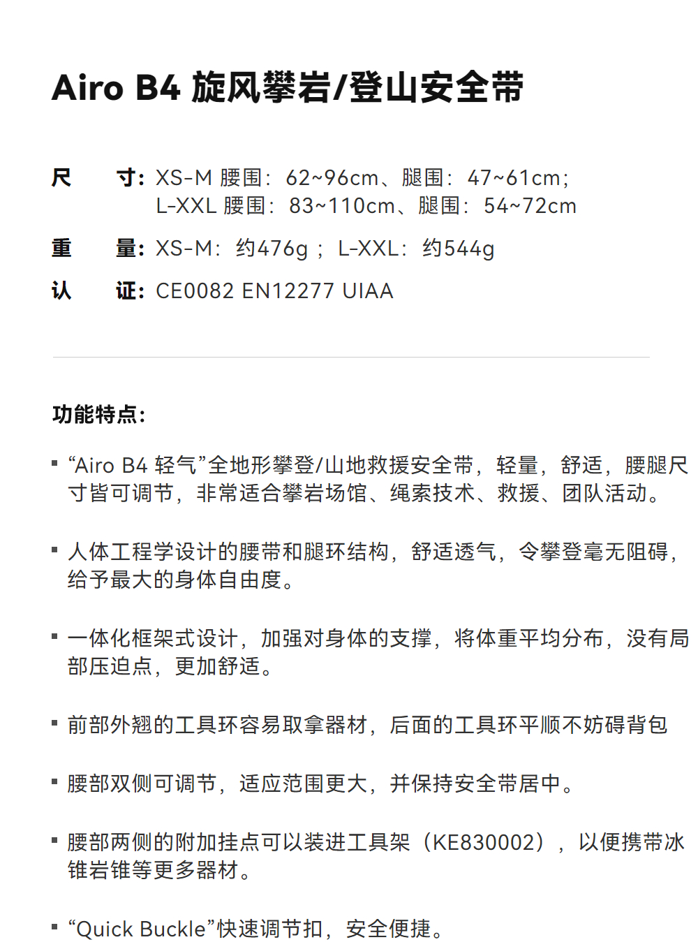 KAILAS凯乐石 Airo B4 旋风攀岩/登山安全带 EH112C【Z】