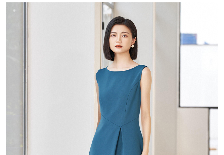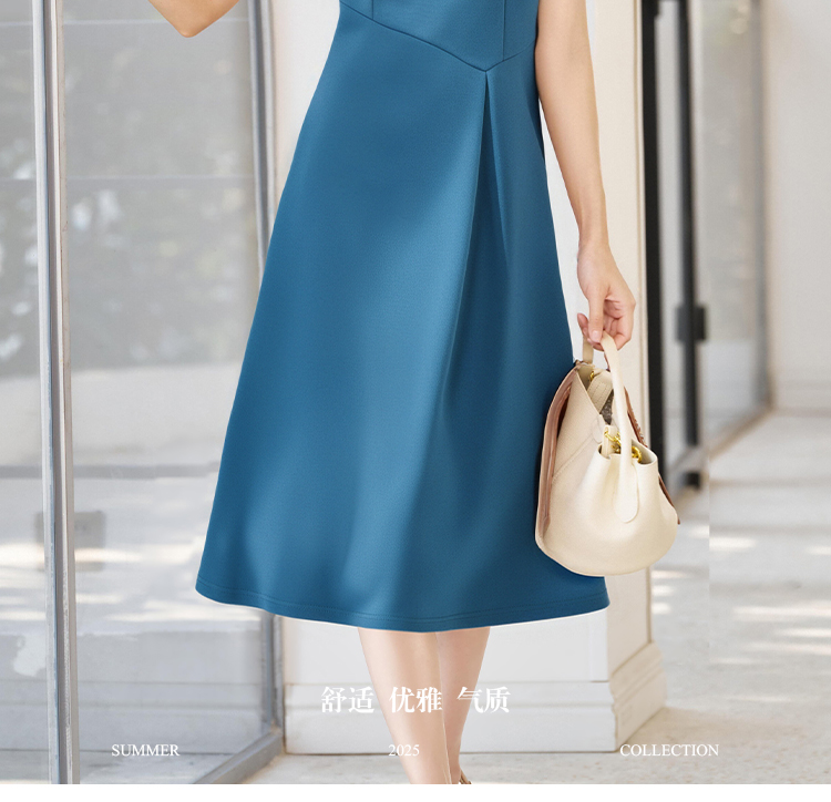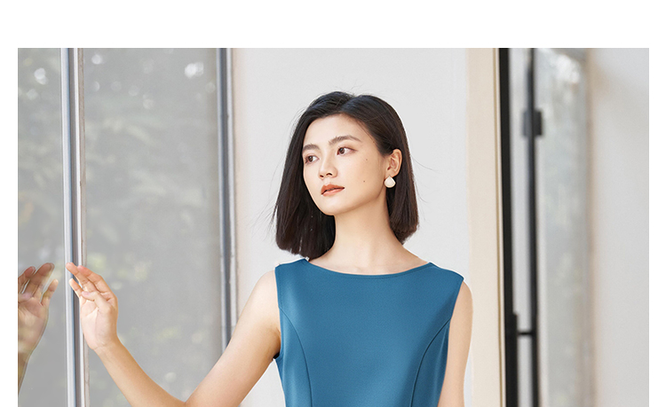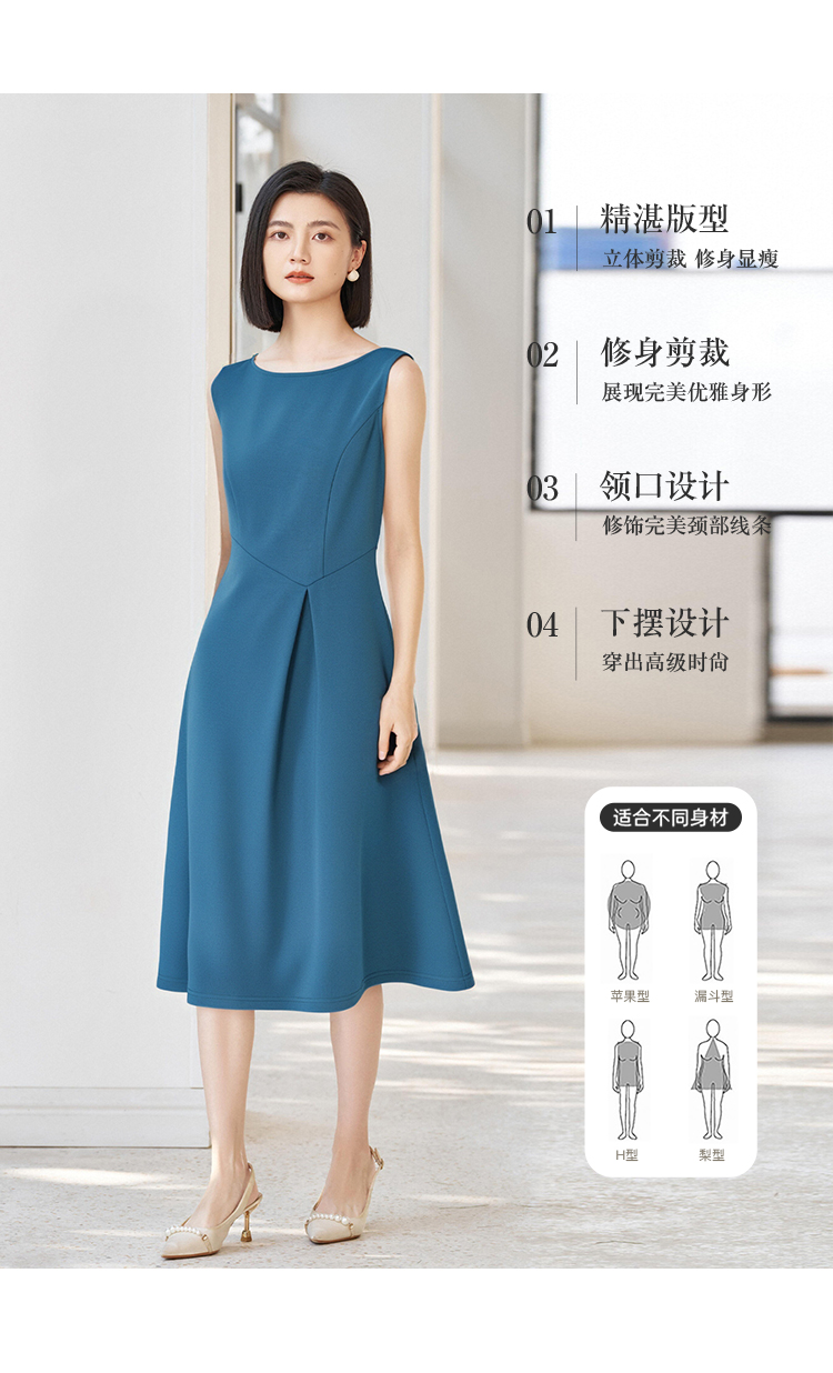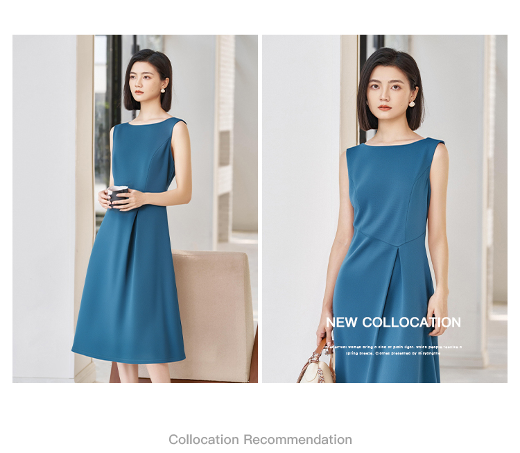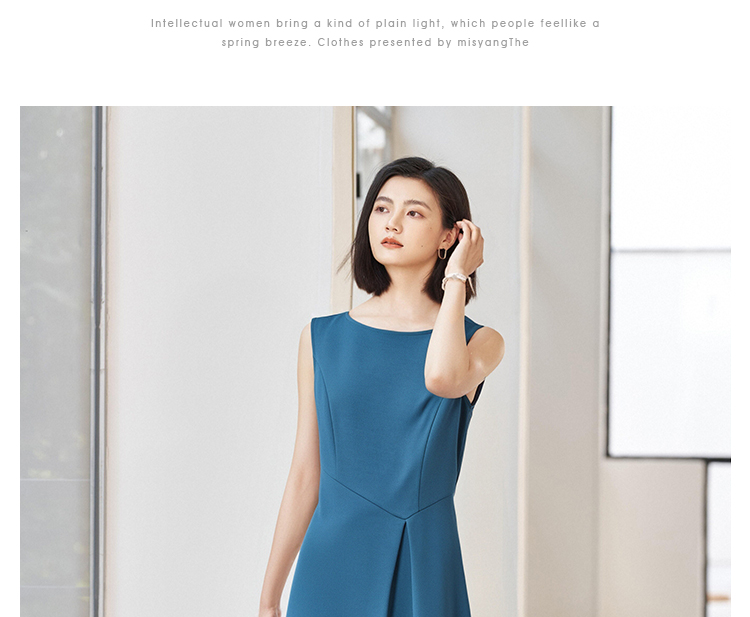 「海蓝序曲」无袖连衣裙 米思阳2026春季无袖修身显瘦圆领大摆裙简约连衣裙女4353