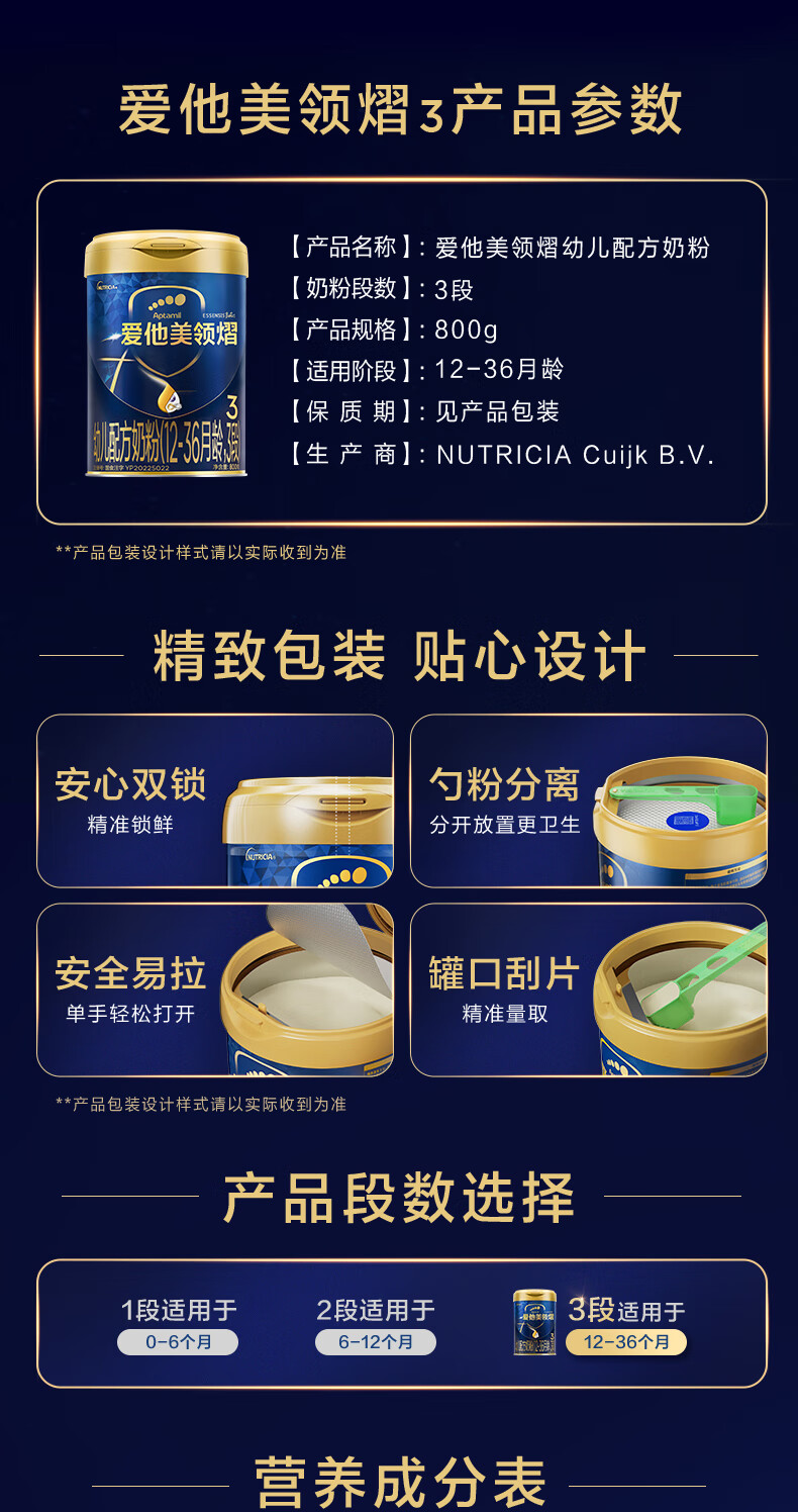 爱他美领熠3段配方奶粉800g 12-36个月婴儿三段进口