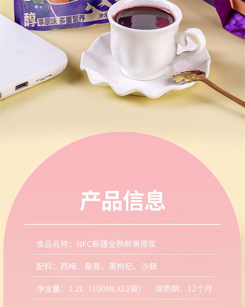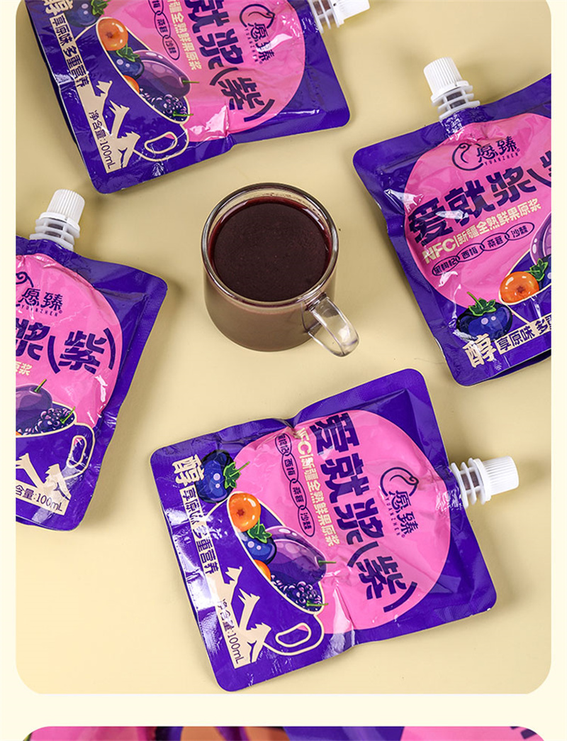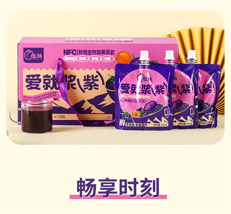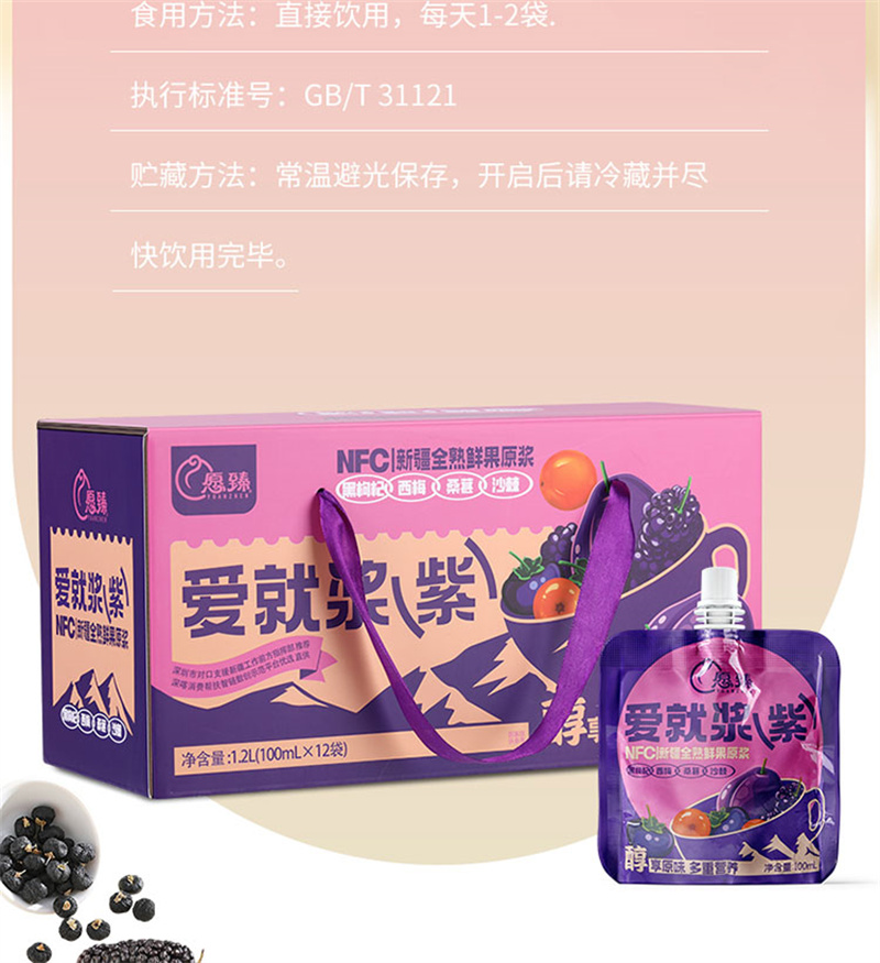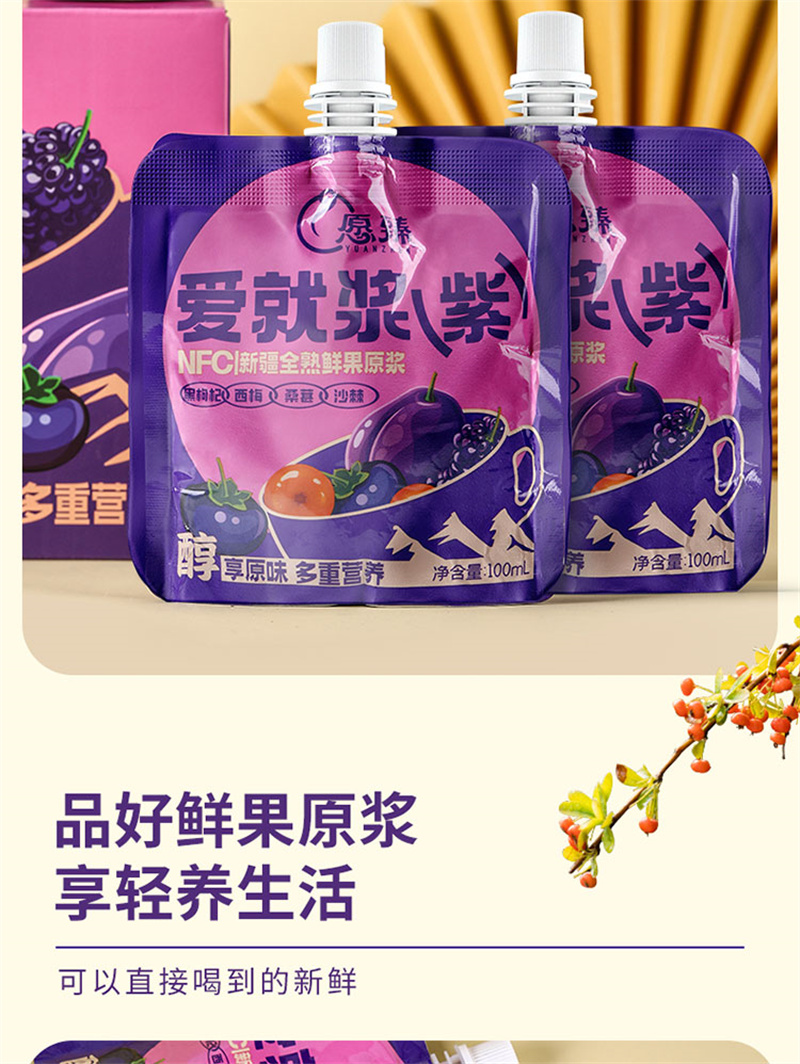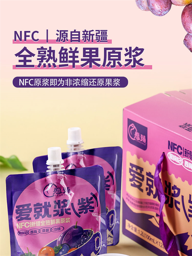 愿臻爱就浆紫NFC混合原浆 100ml*12袋*1盒 新疆全熟水果