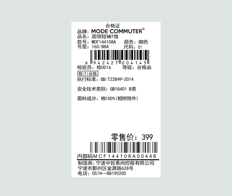 MODE COMMUTER | MC全棉优质精纺棉纱圆领短袖T恤MCF144108A