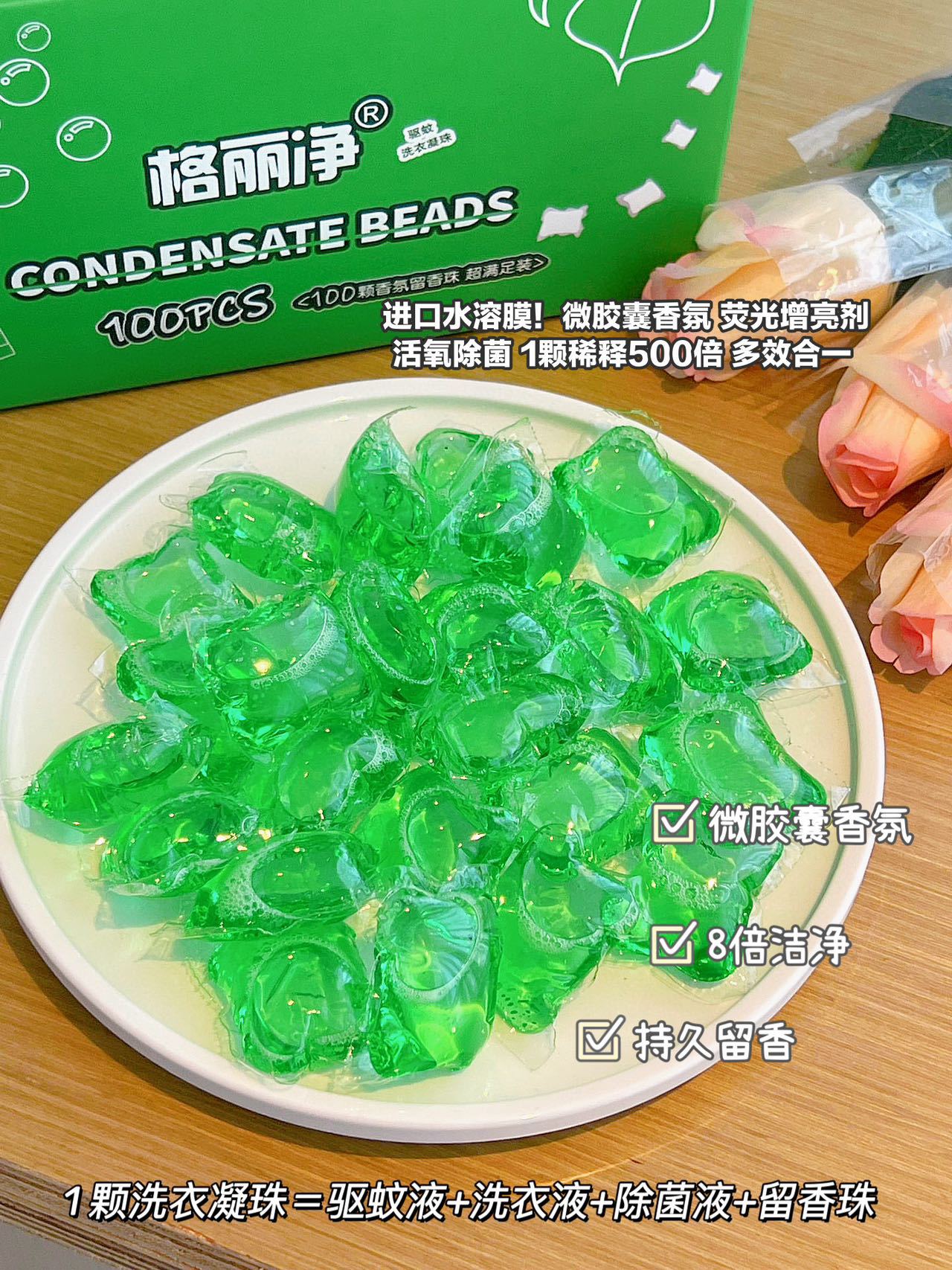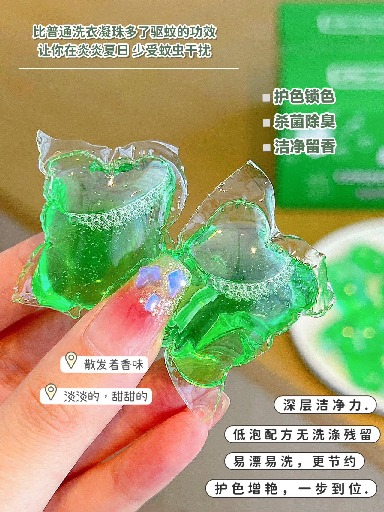 「拍1发5!到手整盒5袋100颗」格丽净驱蚊洗衣凝珠盒装100颗 居家日用香氛香水味浓缩植物提取防蚊洗衣球
