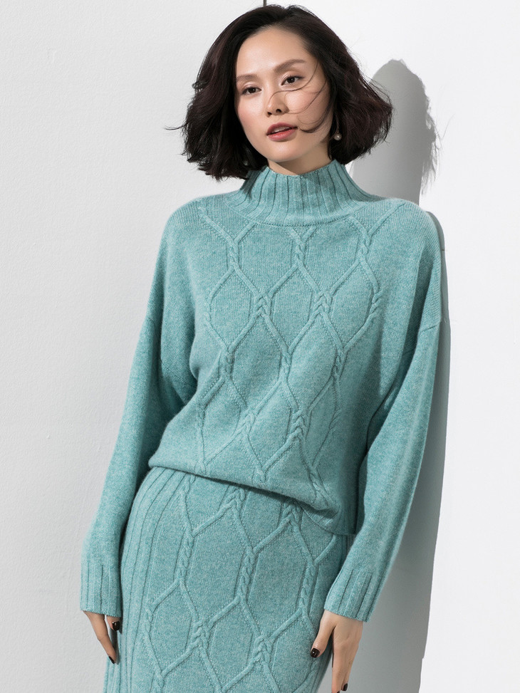 “old money"颈袖添香品牌2024秋冬 清水蓝羊绒套裙 J93E4062