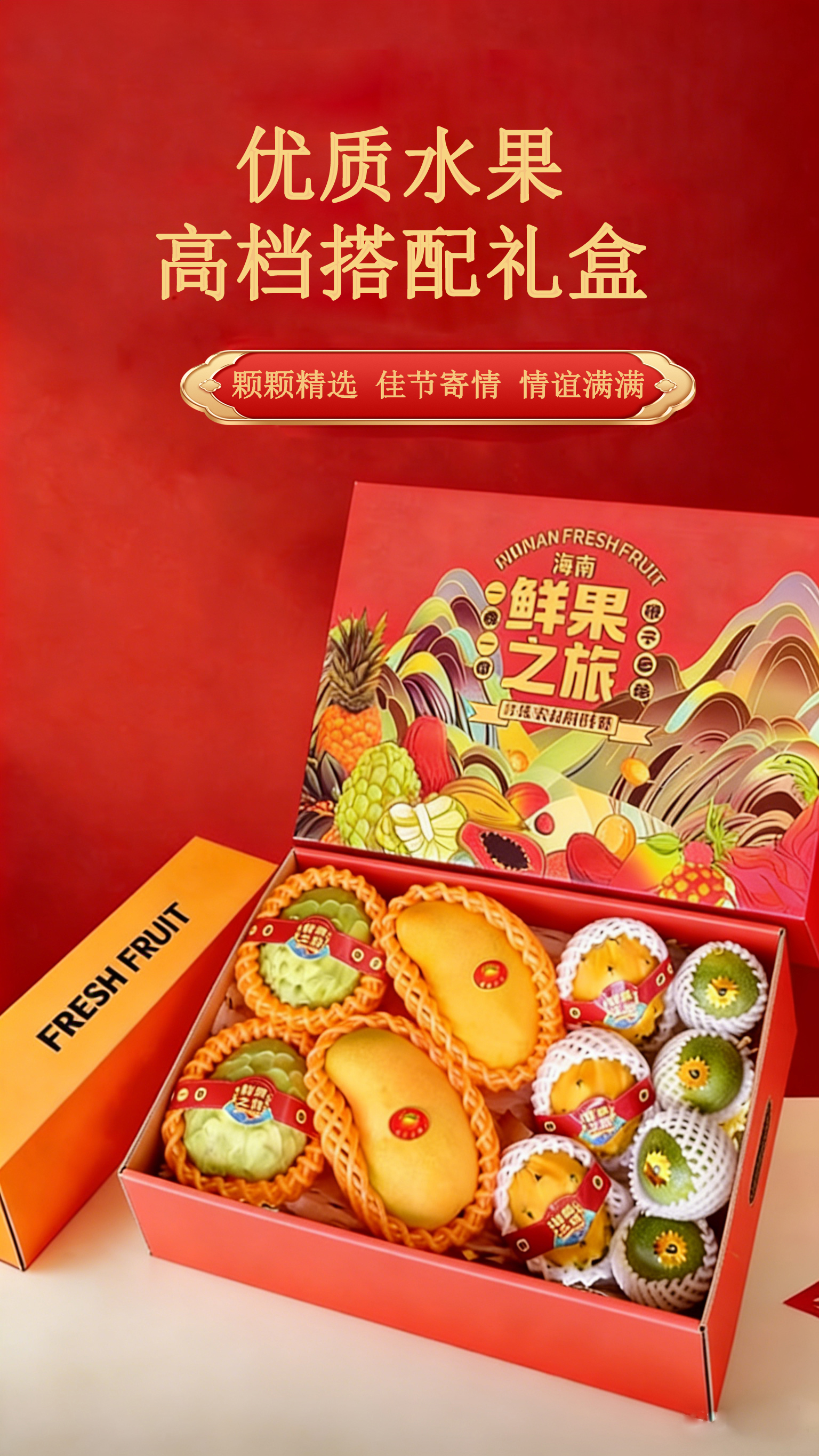 蜜瓜或海南芒果两个、释迦果两个(或莲雾八个)、燕窝果三个、钦蜜九号百香果四个