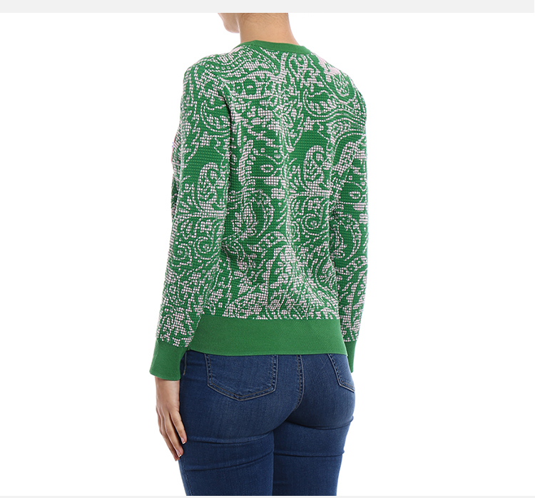 KENZO 高田贤三 女士棉质刺绣徽标撞色图案圆领长袖针织衫 绿色 F852 TO494 850 57