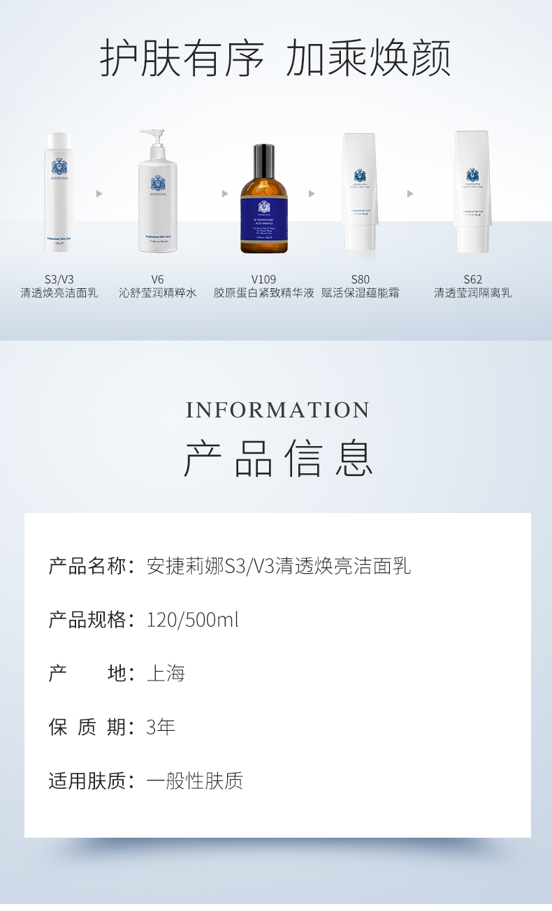 安捷莉娜V3洁面乳500ml+V6精粹水500ml 组合装