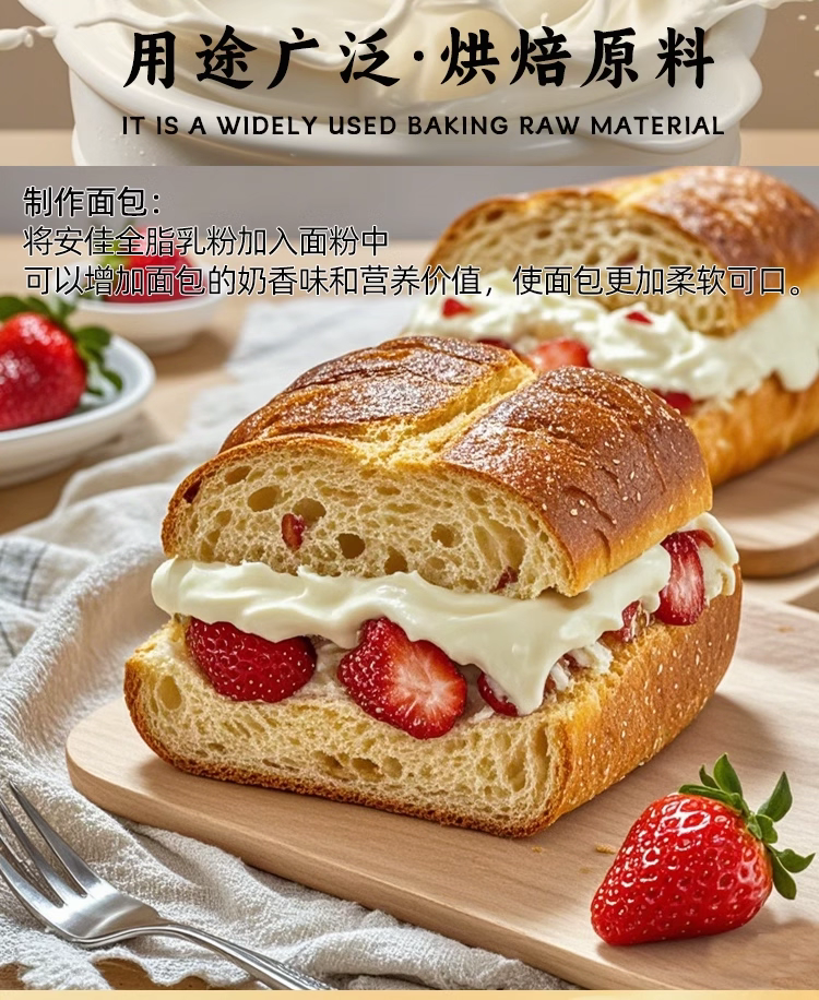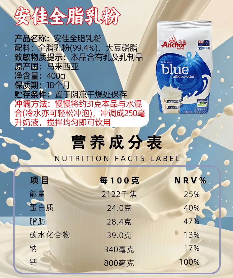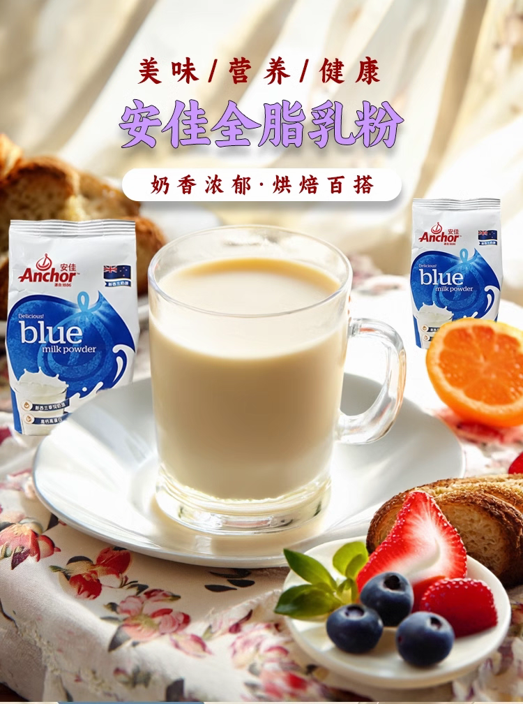 400g 安佳全脂乳粉 新西兰进口奶源学生成人奶粉 牛轧糖雪花酥面包原料 烘焙原料