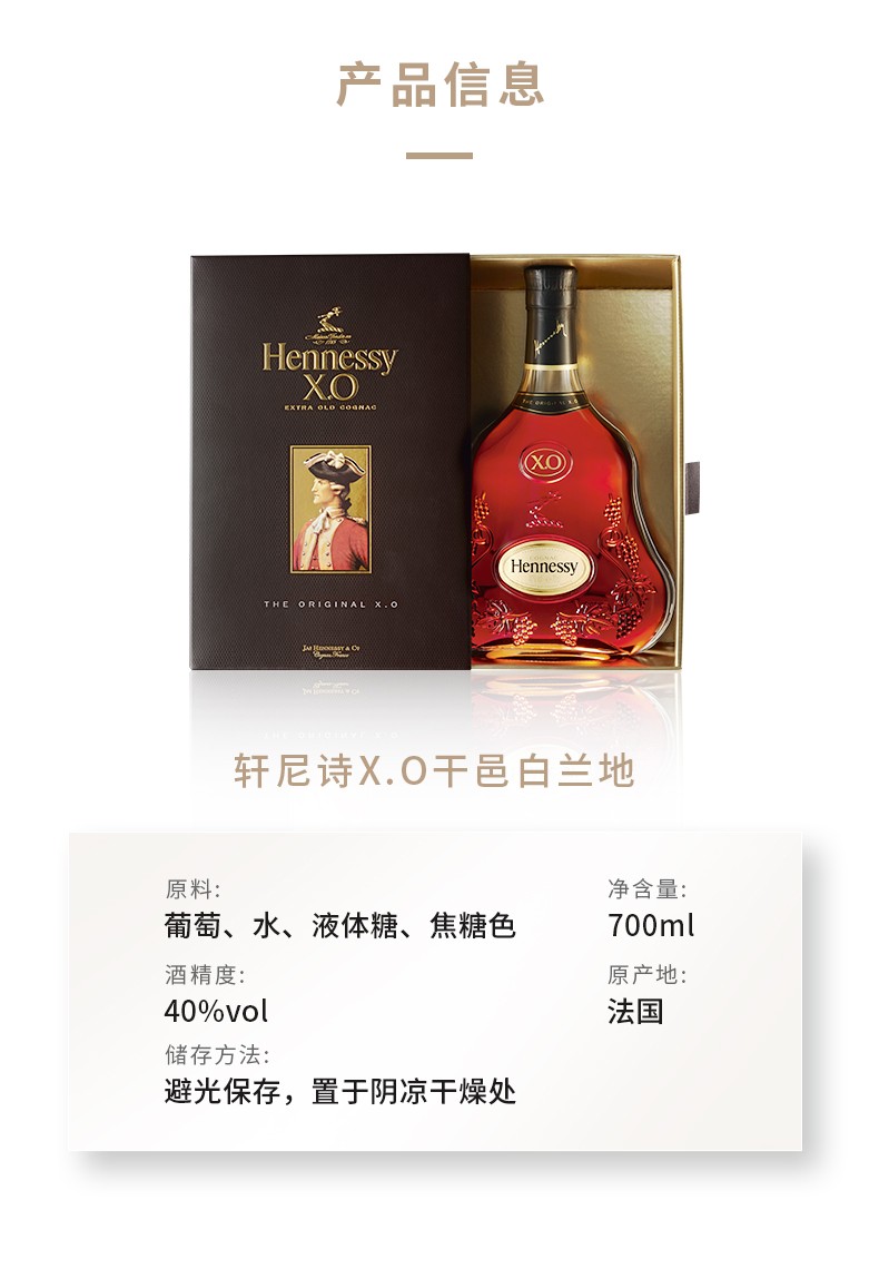 【有税版】轩尼诗XO干邑白兰地 1000ml原装进口