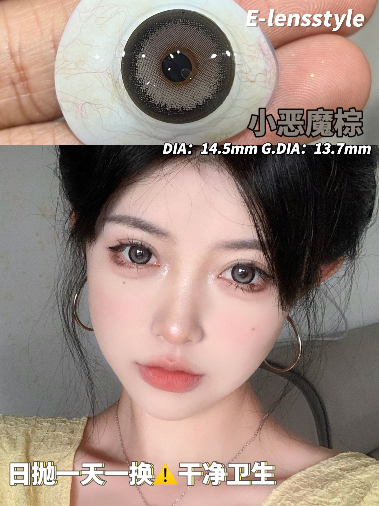日抛 E-lensstyle 小恶魔棕 14.5 着色13.7 粗边混血
