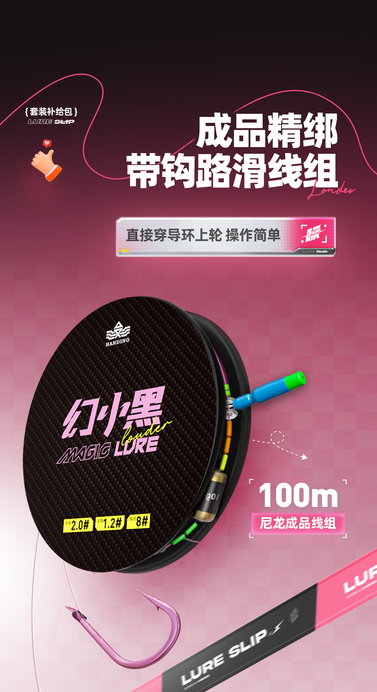 汉鼎幻小黑补给滑漂钓线组绑好鱼线子线双钩成品主线碳氟路滑套装
