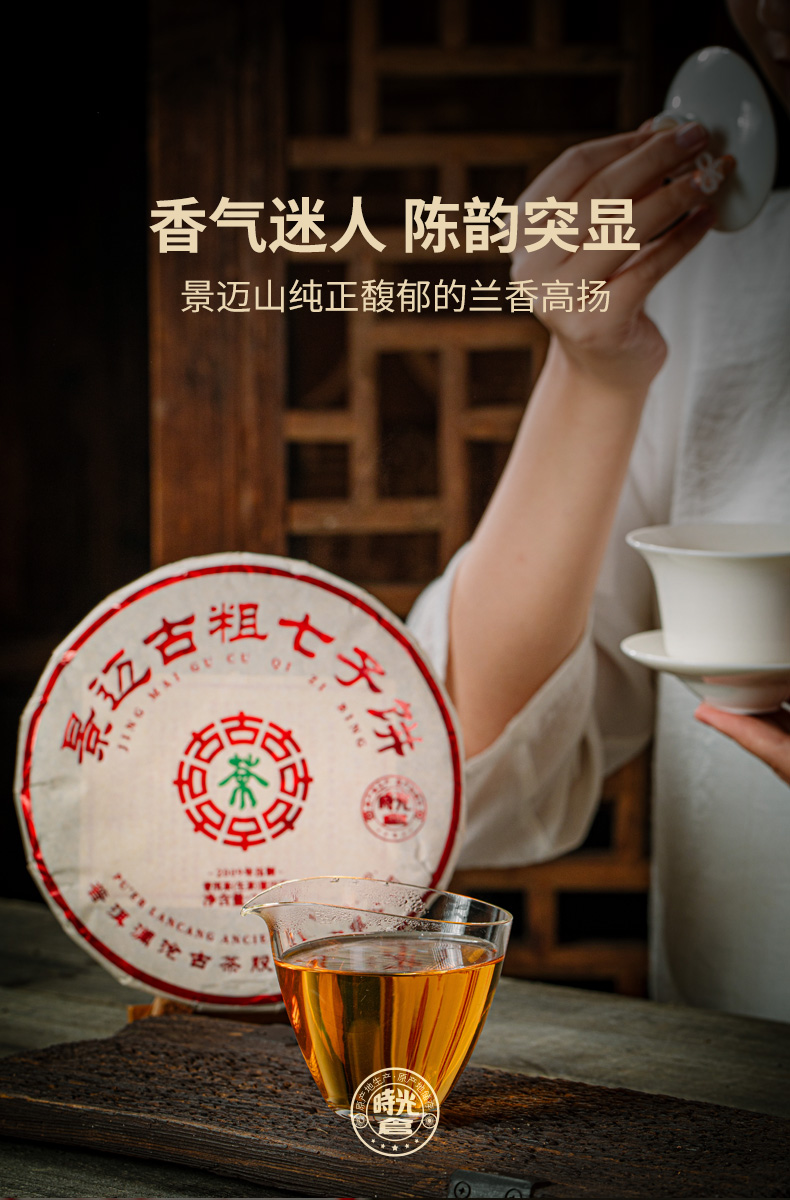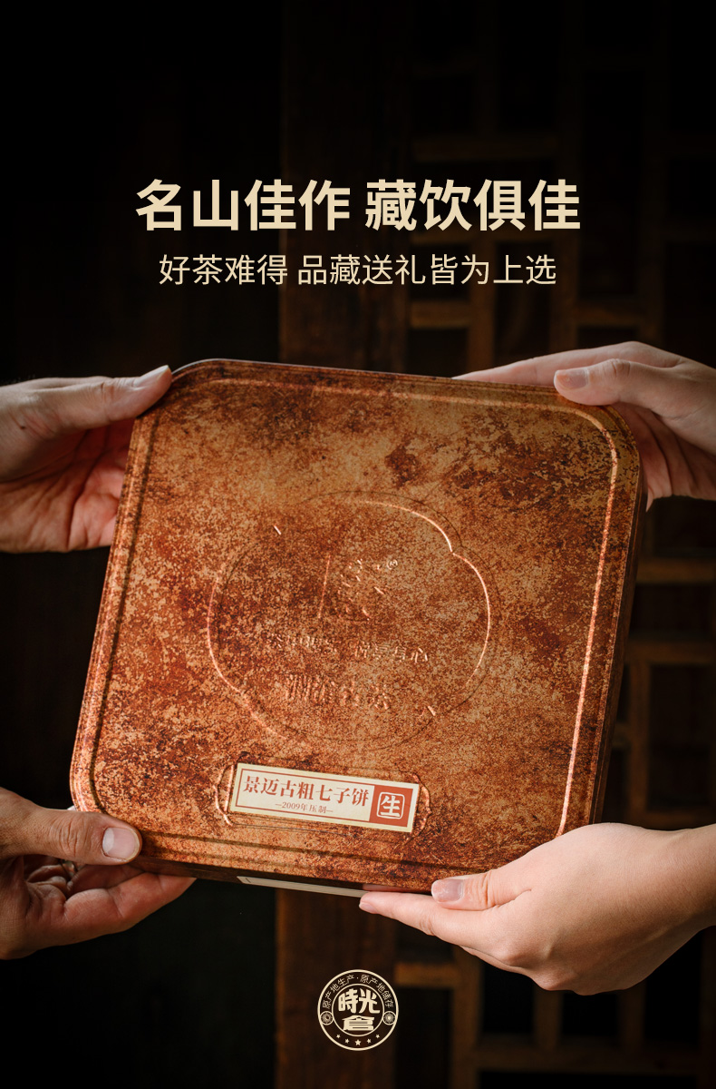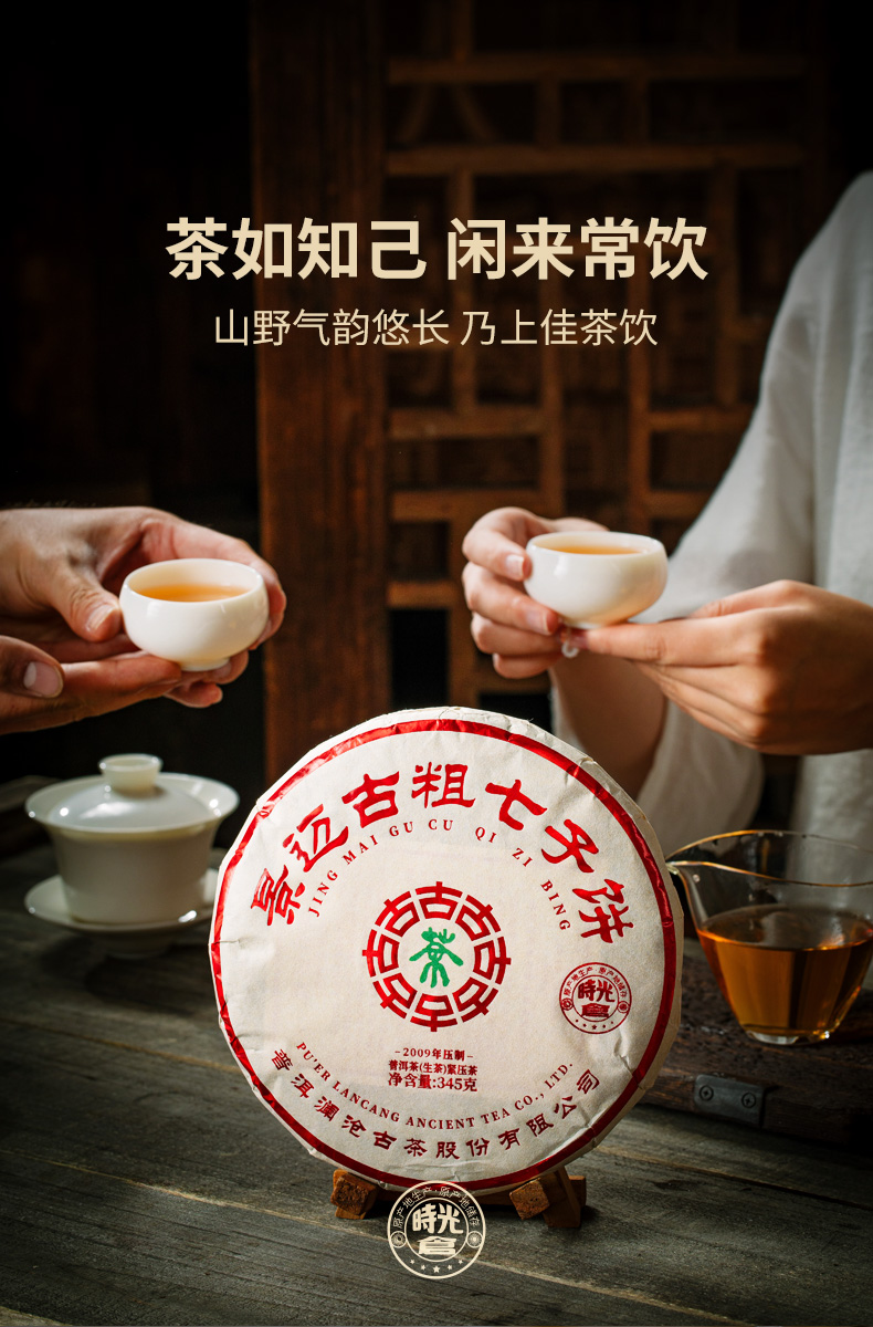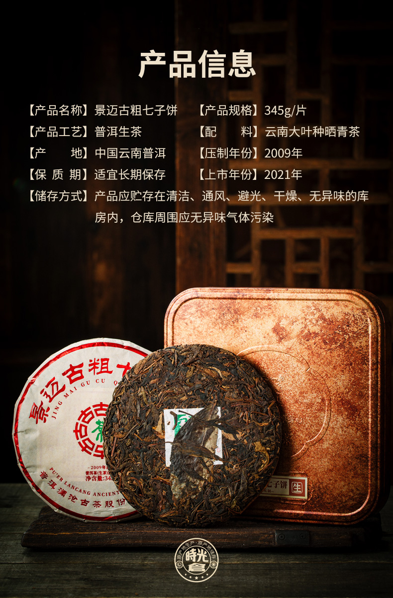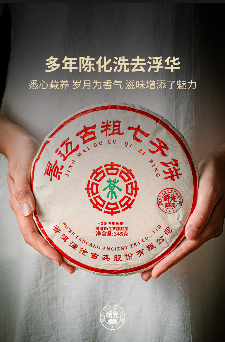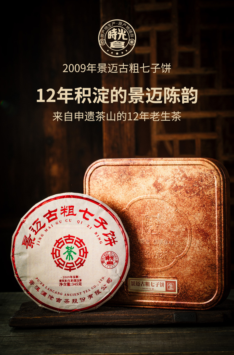 澜沧古茶2009年压制景迈古粗时光仓老茶七子饼茶普洱茶生茶云南茶叶盒装345g