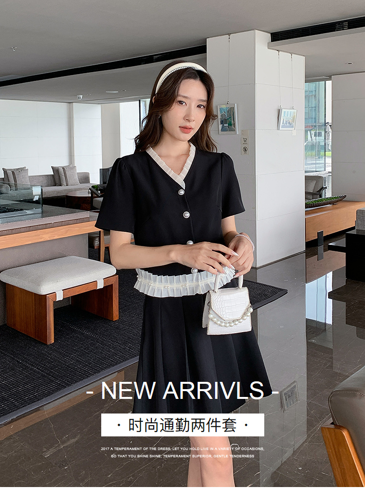 奢姿大码女装2026夏季时尚系带荷叶边套装胖妹妹简约减龄两件套装9952953540【1】