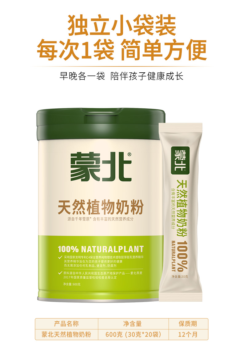 蒙北天然植物奶粉1罐600g(30g*20袋)