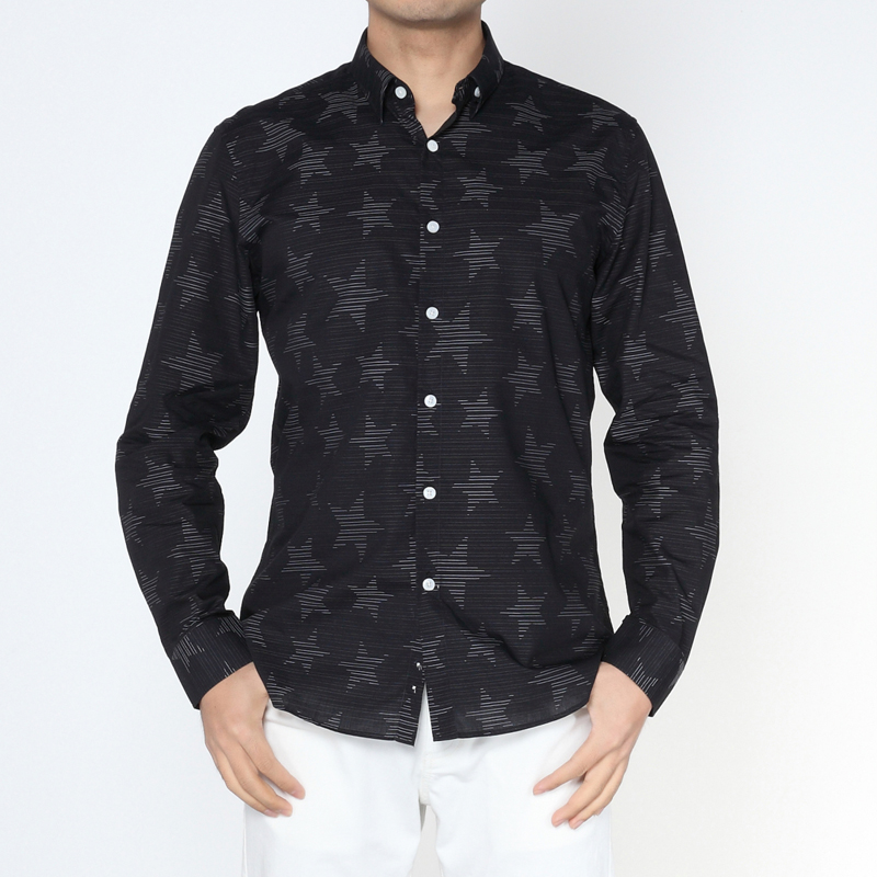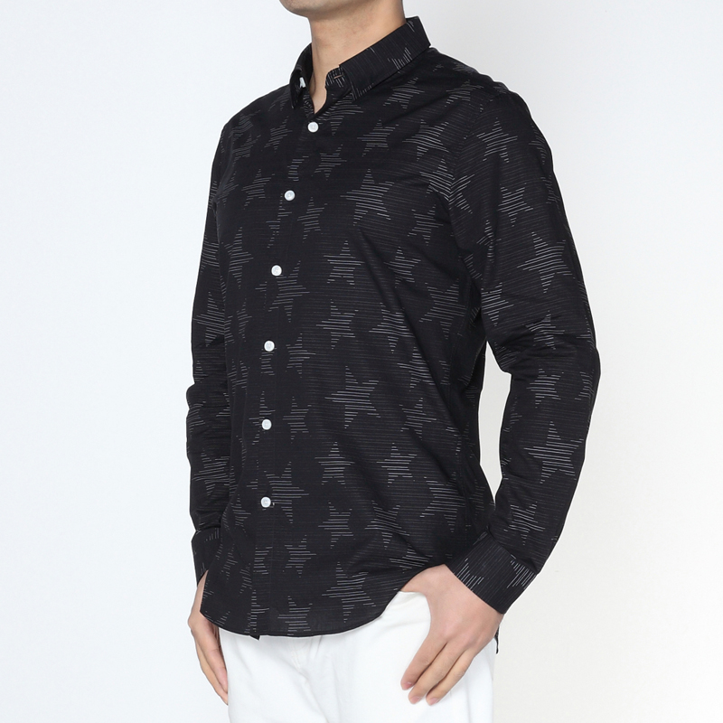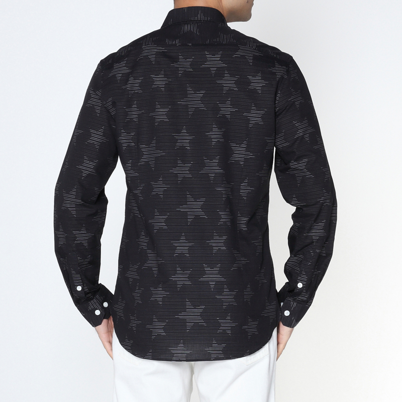 Marco Azzali 黑色星星提花长袖衬衫 C5106200