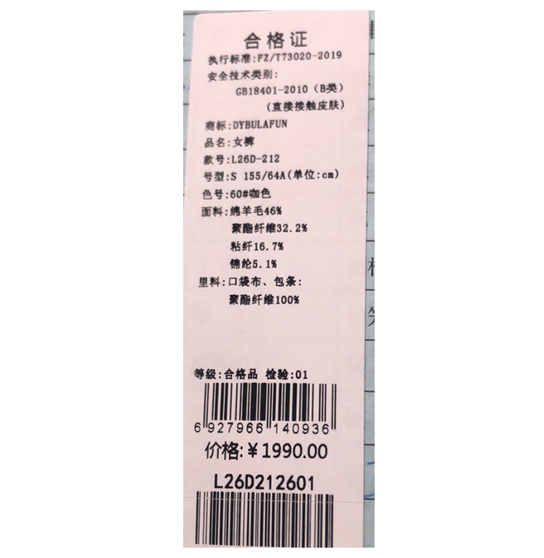 戴布拉芬长裤L26D212