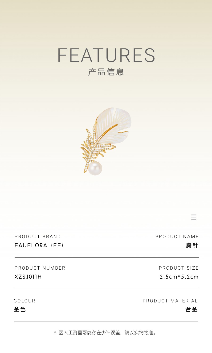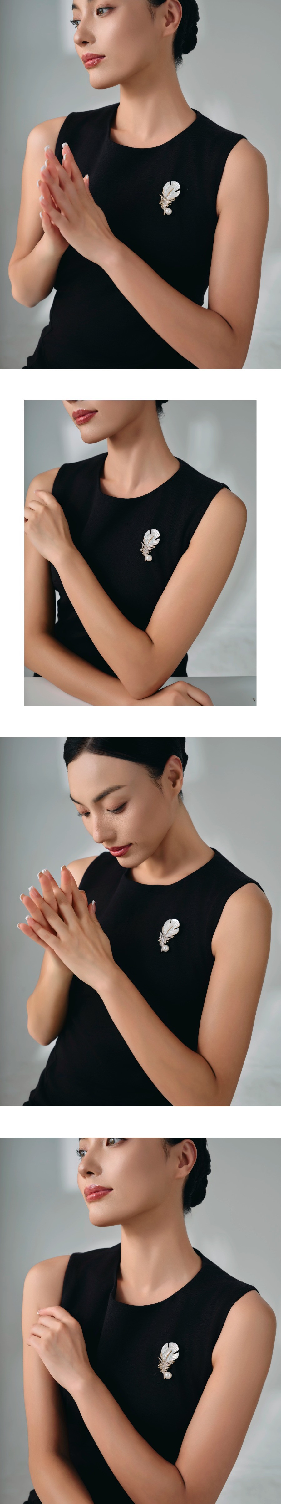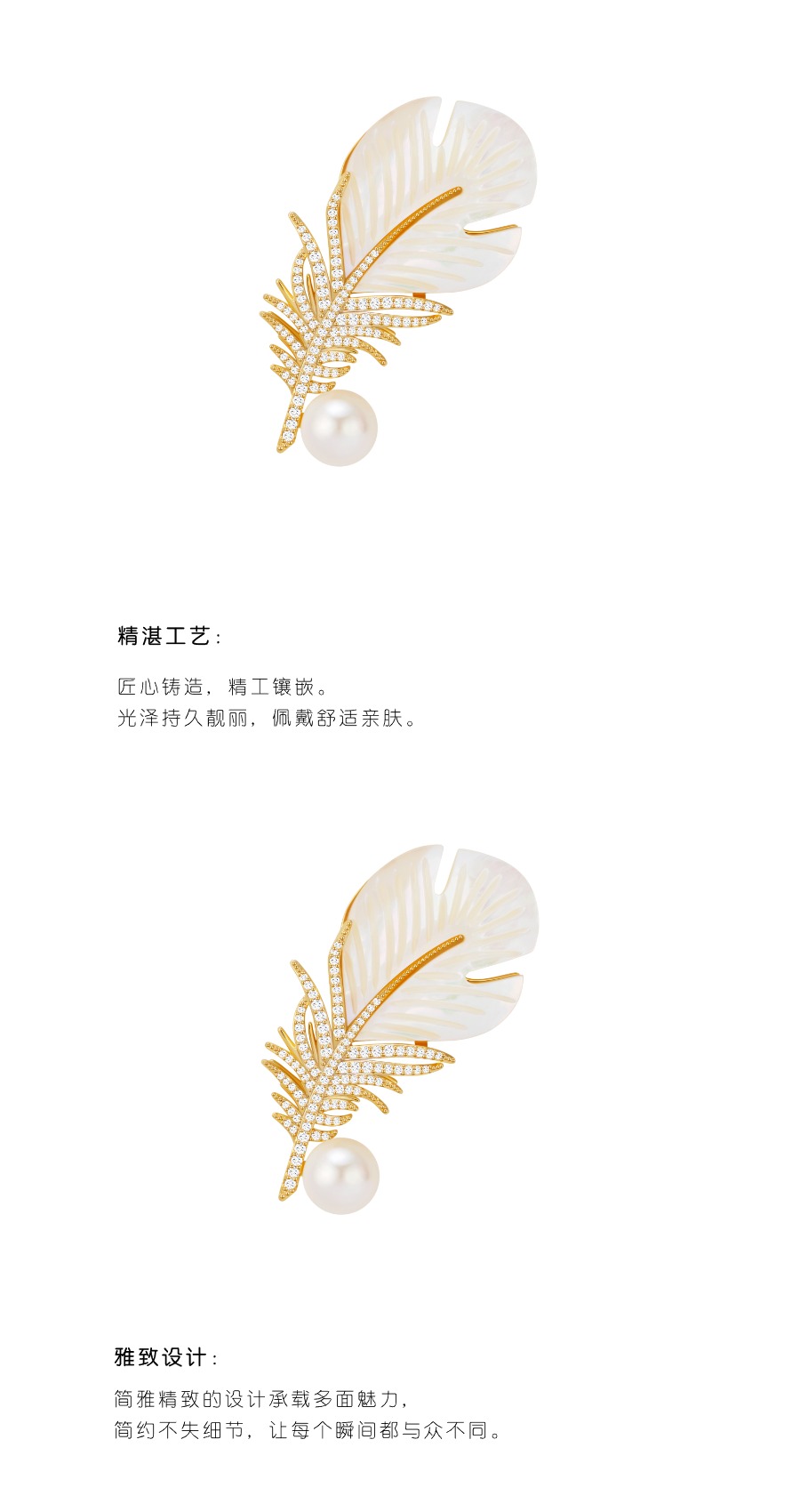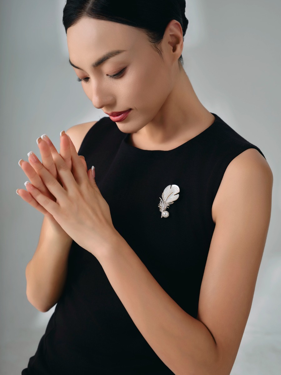 『羽绮』羽毛造型仿珍珠锆石胸针