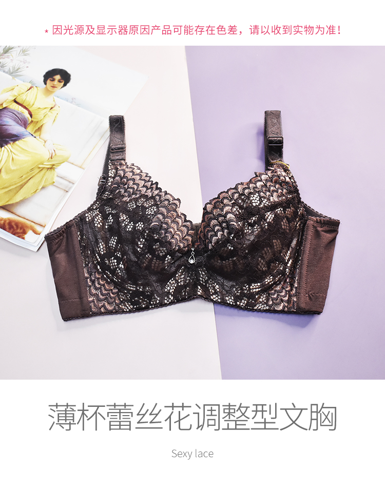 皇家丽美大胸显小薄杯调整型内衣收副乳聚拢文胸W101-1