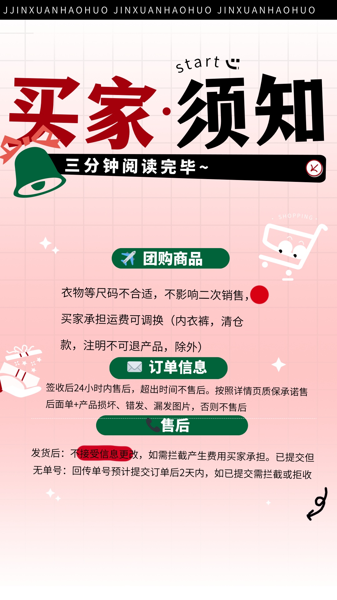 ★售后须知:⚠售后须知:不影响二次销售的情况下,支持七天无理由退换货,产品退回请保持产品包装完好,吊牌完整,否则不支持退换货服务。支持七天无理由退 换货(配件齐全,不影响二次销售)