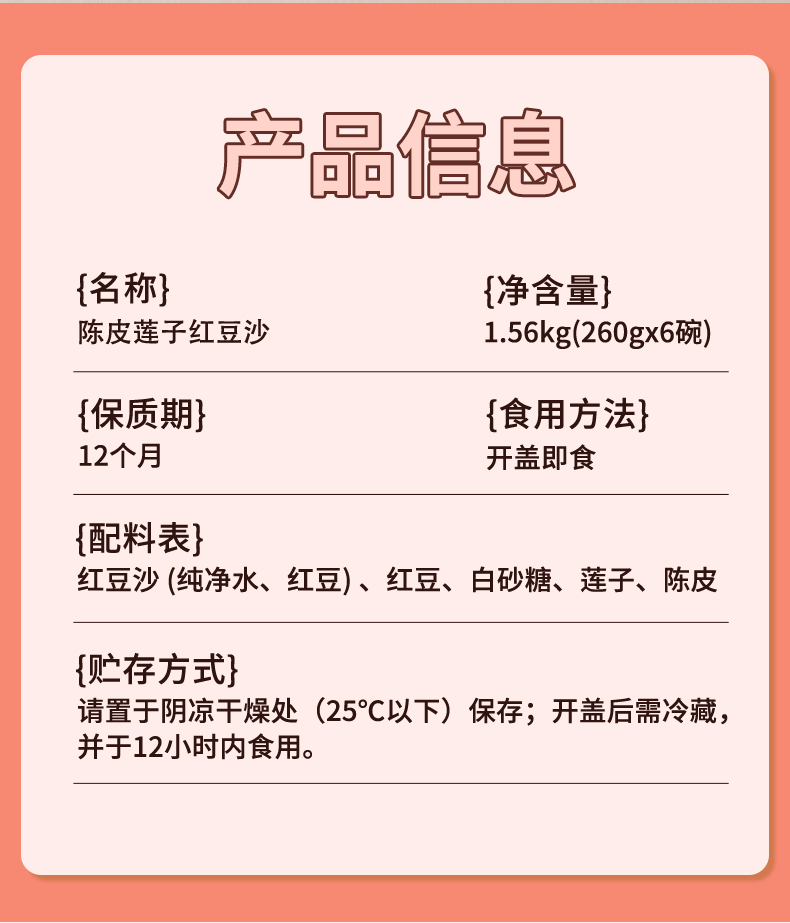 蔡府陈皮莲子红豆沙260g*6碗 A-2123 (效期26-9)