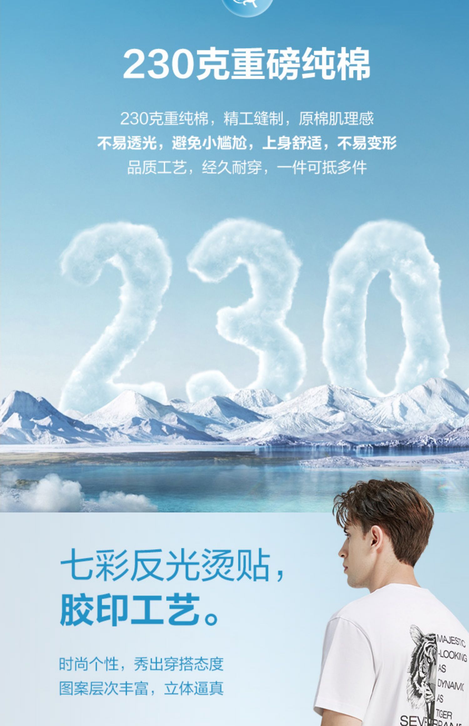 柒牌t恤男短袖夏季新款纯棉宽松时尚重磅T恤百搭老虎体恤衫 122T71340