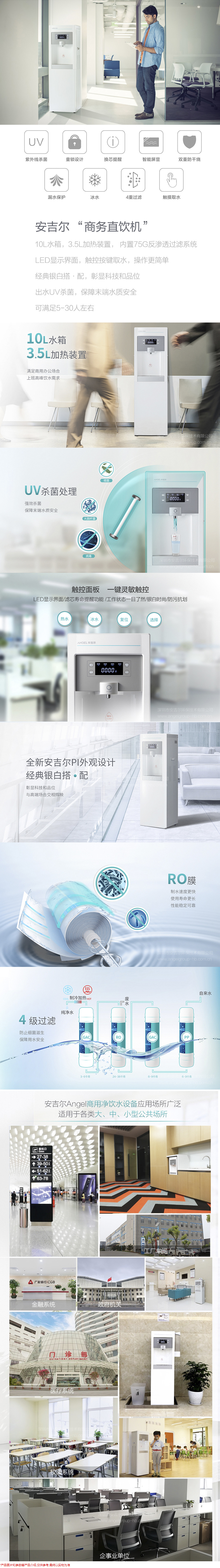 安吉尔(ANGEL)商用净水器 直饮水机净水机 净饮一体机自动净化四级过滤冰温热款Y1251LKD-ROM