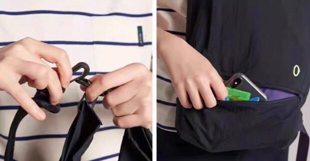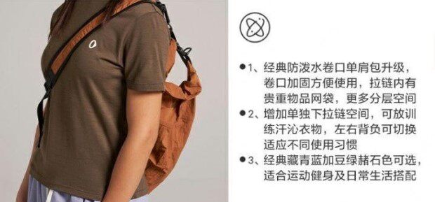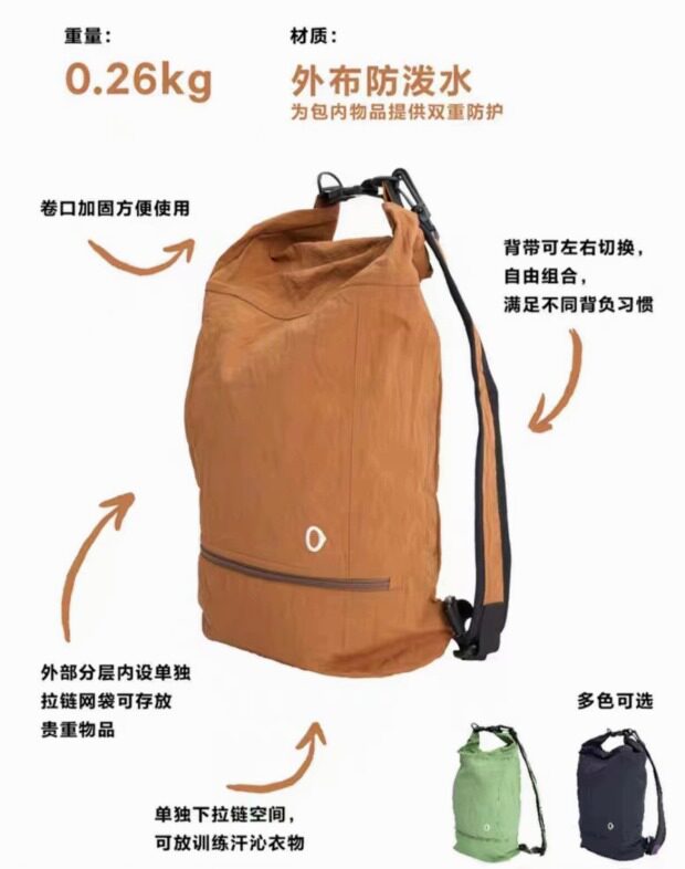 上下左右两端 都可挂背带 上/环扣 下/织带 斜着背 横着背 都阔以 哈~